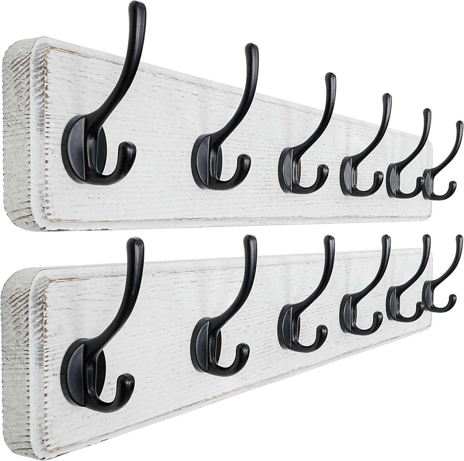- 【STYLISH RUSTIC CHARM:】The wood hook rack features a unique, aged finish, exuding timeless rustic and farmhouse style. SIZES(INCH): 24 x 5-1/4 x 2-3/4; Including 2 x wooden coat racks wall mount with 10 dual hooks, mounting hardware, white & black color.