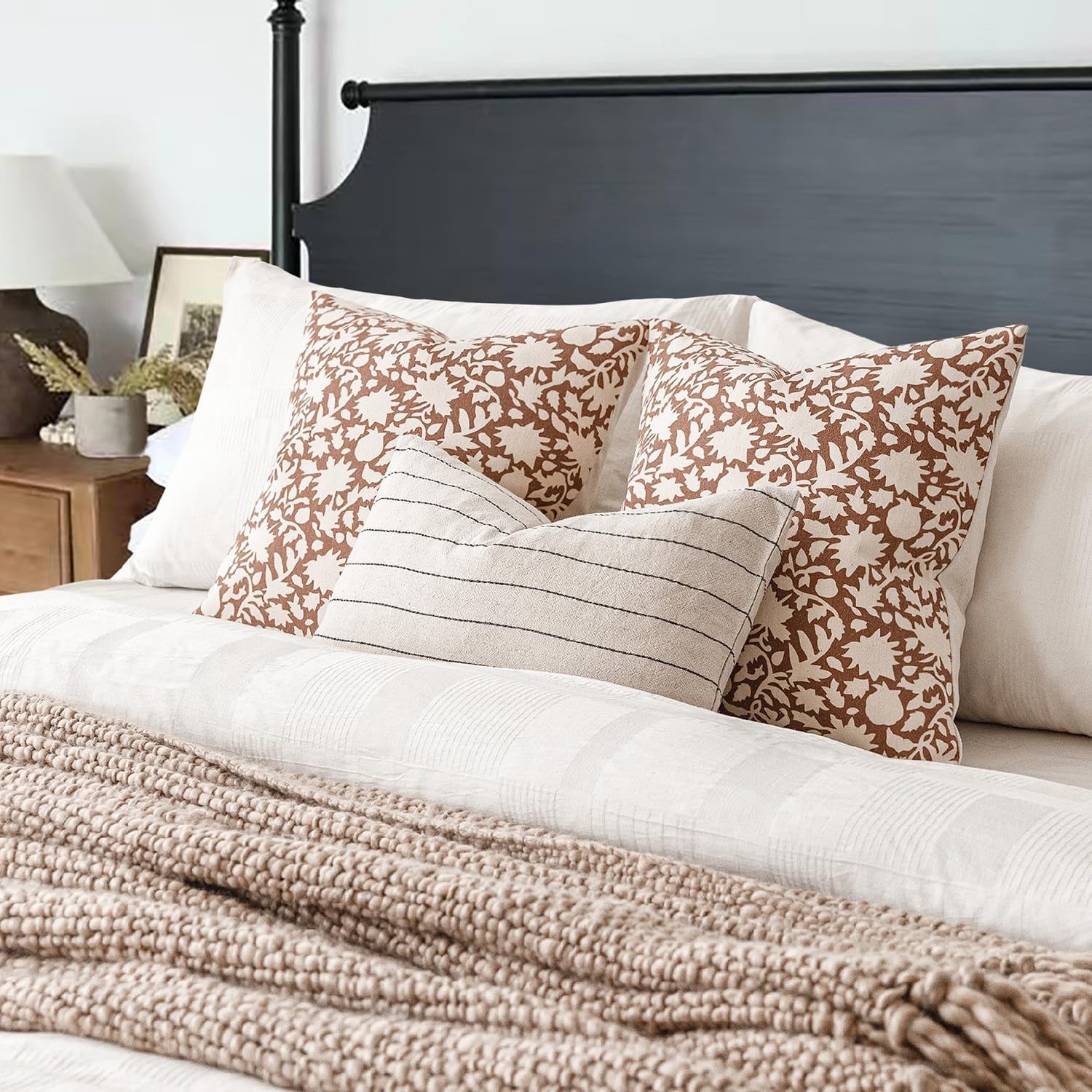 Foindtower Set of 2 Decorative Neutral Floral Throw Pillow Covers Accent Farmhouse Cushion Covers Boho Pillowcase for Couch Sofa Bedroom Living Room Home Decor Outdoor,24×24 Inch,Light Orange Brown