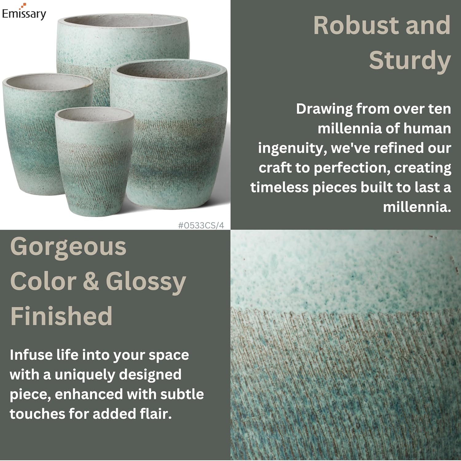 Emissary Home and Garden Bullet 12in., 14in., 15.5in., 21in. H Coastal Splash Ceramic Round Planters with Drainage Hole (Set of 4)