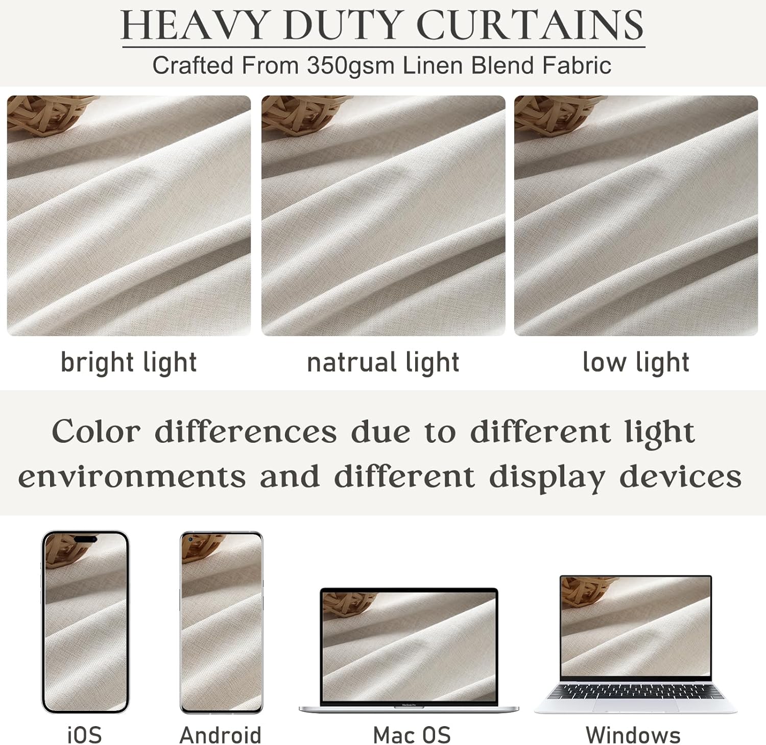 - Pinch Pleats Design:Each panel has 7 pleats.linen draperies are crafted from blended fabric(30%linen,70%polyester),drapes well and not easy-wrinkle.Suitable for various styles:modern,farmhouse,boho,neutral,bedroom,living room,nursery,sliding door,etc.