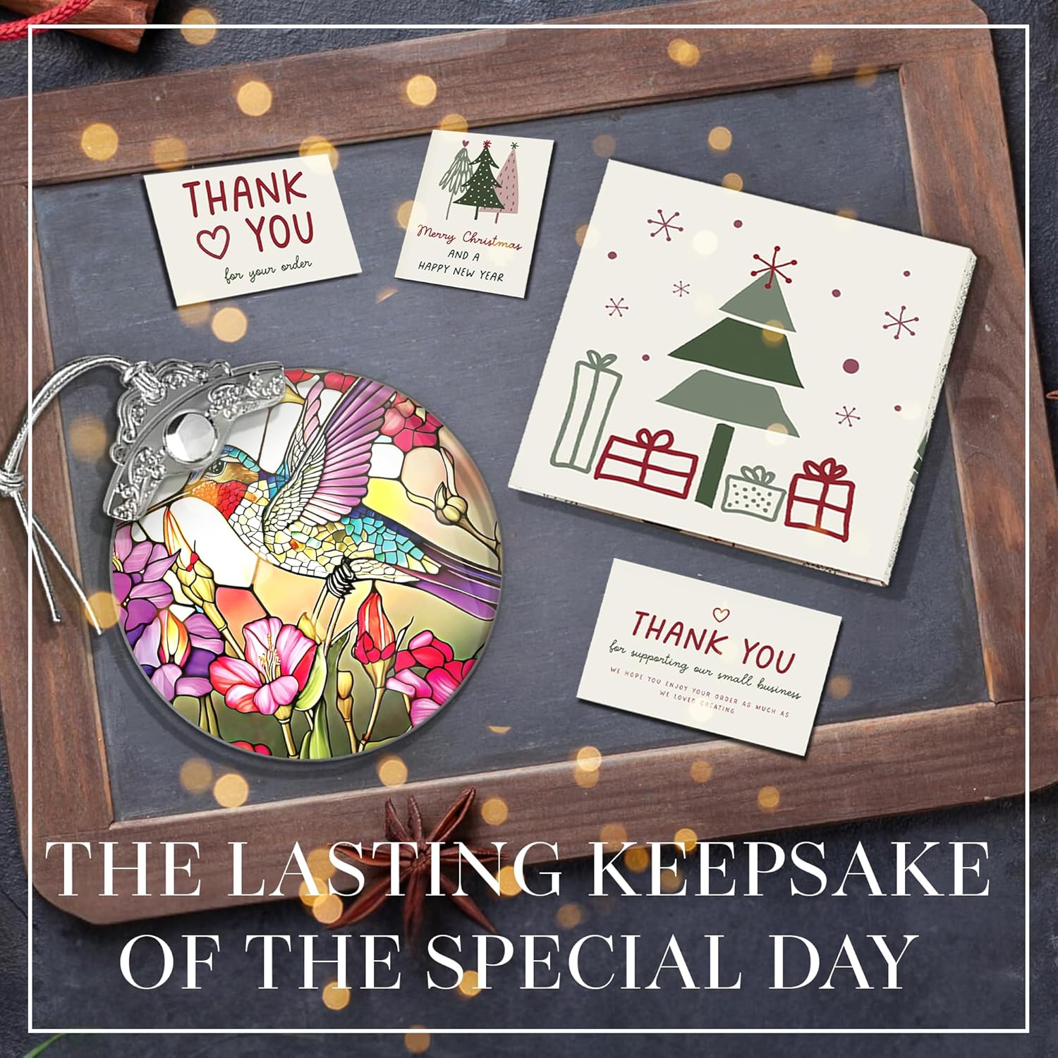 2025 Christmas Ornament, Stained Glass Effections, Christmas Tree 4 Inch Acrylic Ornament Art, White Elephant Gifts Car Interiors Decors, Christmas Decor (Radiant Hummingbird)