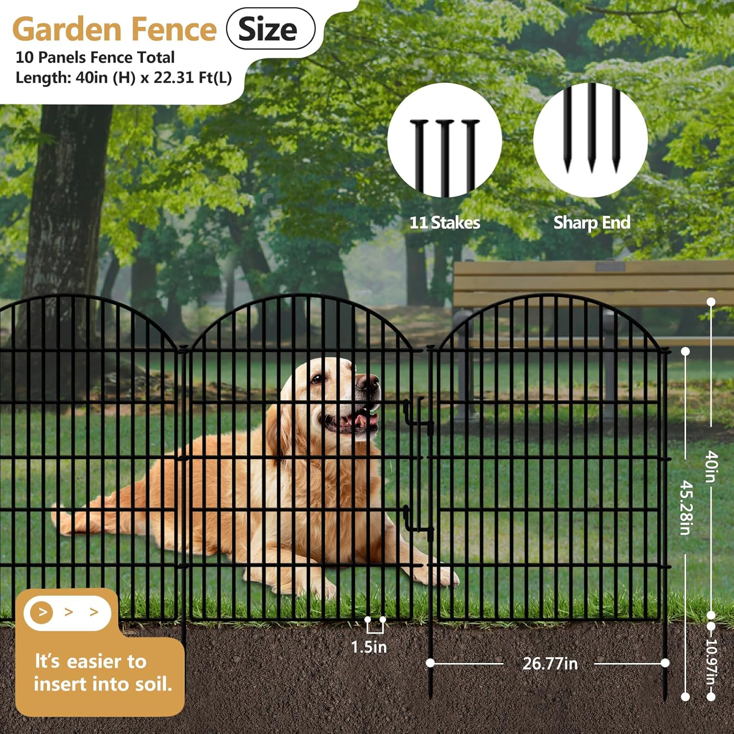 10 Panels Decorative Garden Fence with Lock, 40in (H) X 21.92ft (L) No Dig Dog Fences Outdoor for Yard, Rustproof Tall Animal Barrier Fencing, Metal Panels Suitable for Yards Border, Patio Use