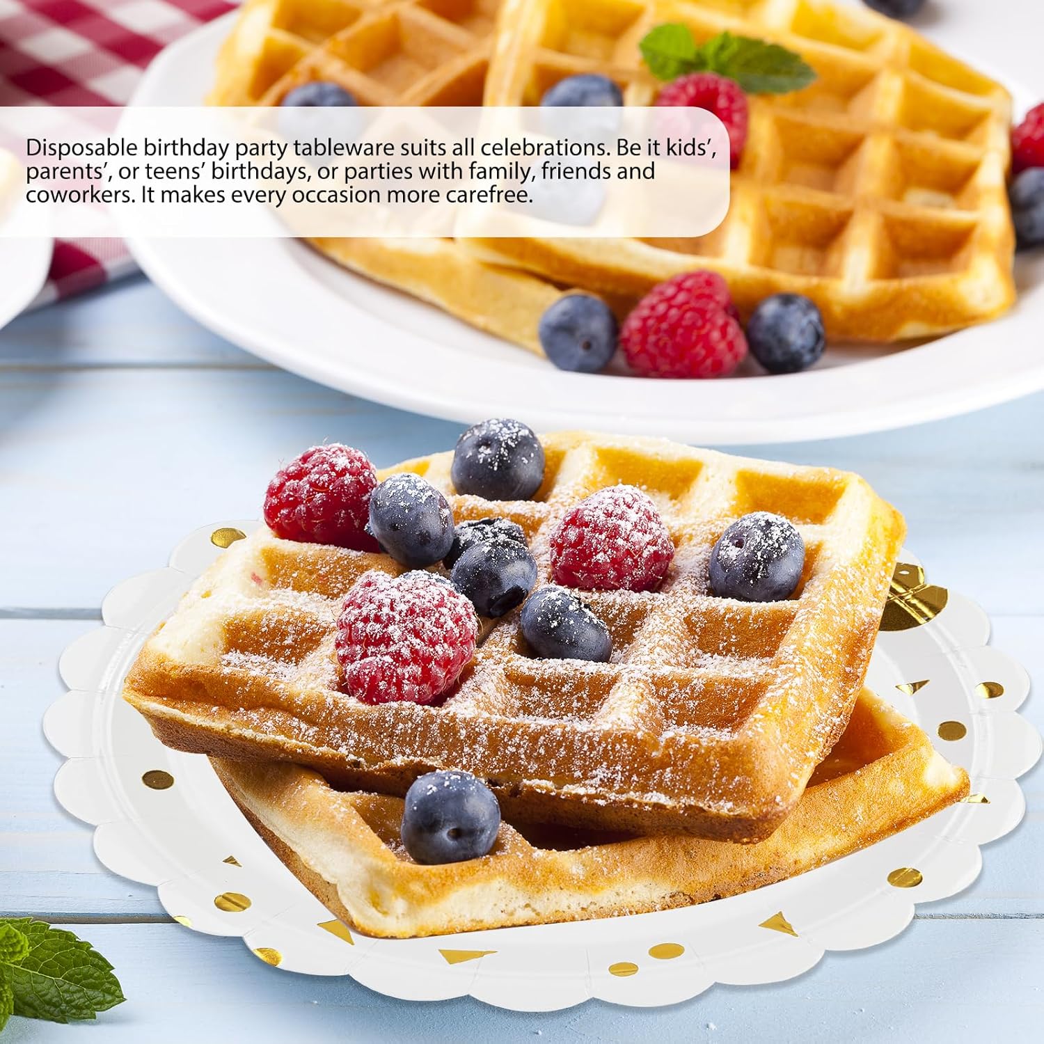 - 【EXQUISITE DESIGN】:Eye-catching gold foil stamping of “Happy Birthday” in stylish fonts adorns these scalloped birthday cake plates and the rising balloon signifies growing goodness. It adds a touch of elegance and festivity, making your birthday party table instantly stand out.