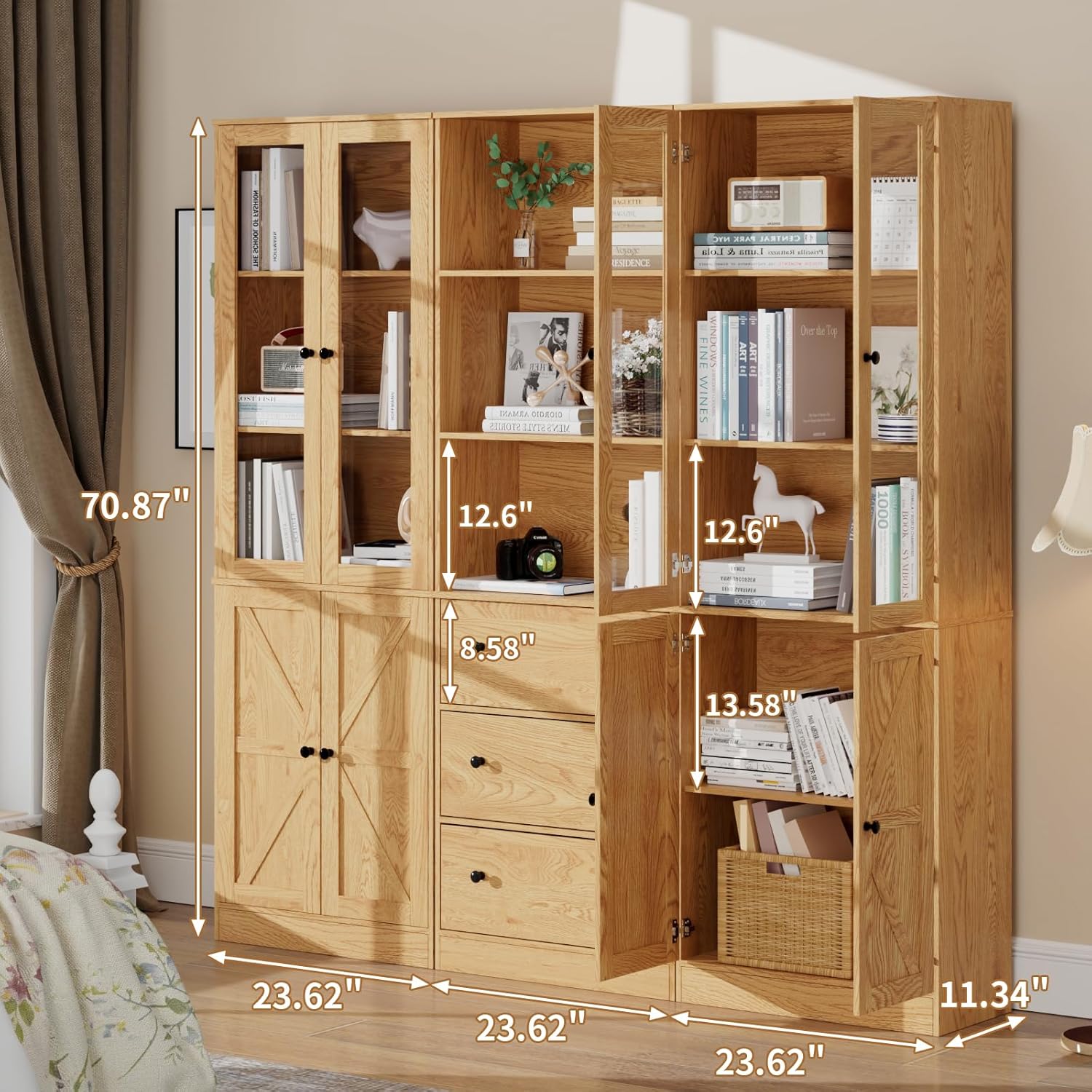 - 【Multifunctional Use】- The bookshelf with storage is designed with wood grain style and minimalist aesthetic, it seamlessly fits into any decor style. These wooden bookcases can be used as display cabinets, office bookshelves, library bookcass, kitchen pantry cabinets, etc