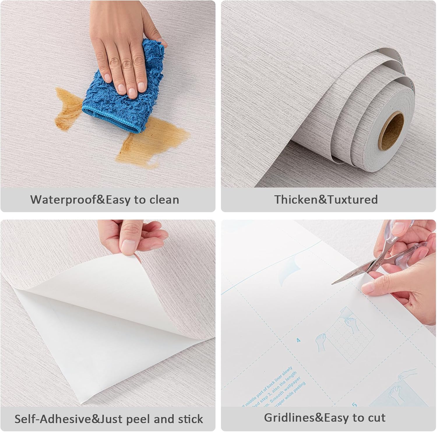 - SIZE: 1 roll = 20.8 inches wide x 32.8 feet long = 56.7 sq. ft. [Color/Pattern] The wallpaper features a soft light gray base, overlaid with organic plant fiber-textured vertical stripes and delicate horizontal lines. The pattern is rendered in subtle tonal variations, graduating from pure white to ethereal light grays. Comes with Installation instruction and LIFETIME WARRANTY .This Grasscloth removable wallpaper mimics the look and texture of authentic grasscloth, bringing timeless beauty into any space.