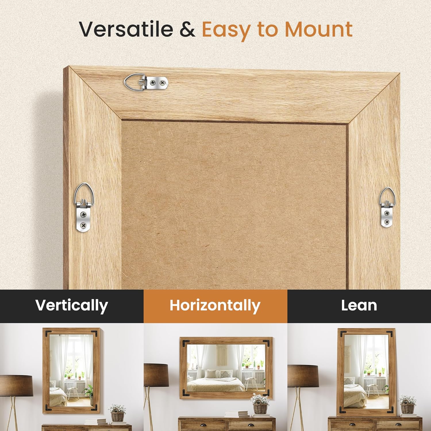 Bathroom Mirror for Wall with Wooden Frame, 36"x24" Solid Wood Vanity Mirror for Farmhouse, Bathroom, Bedroom Decor, Vertical or Horizontal Hanging