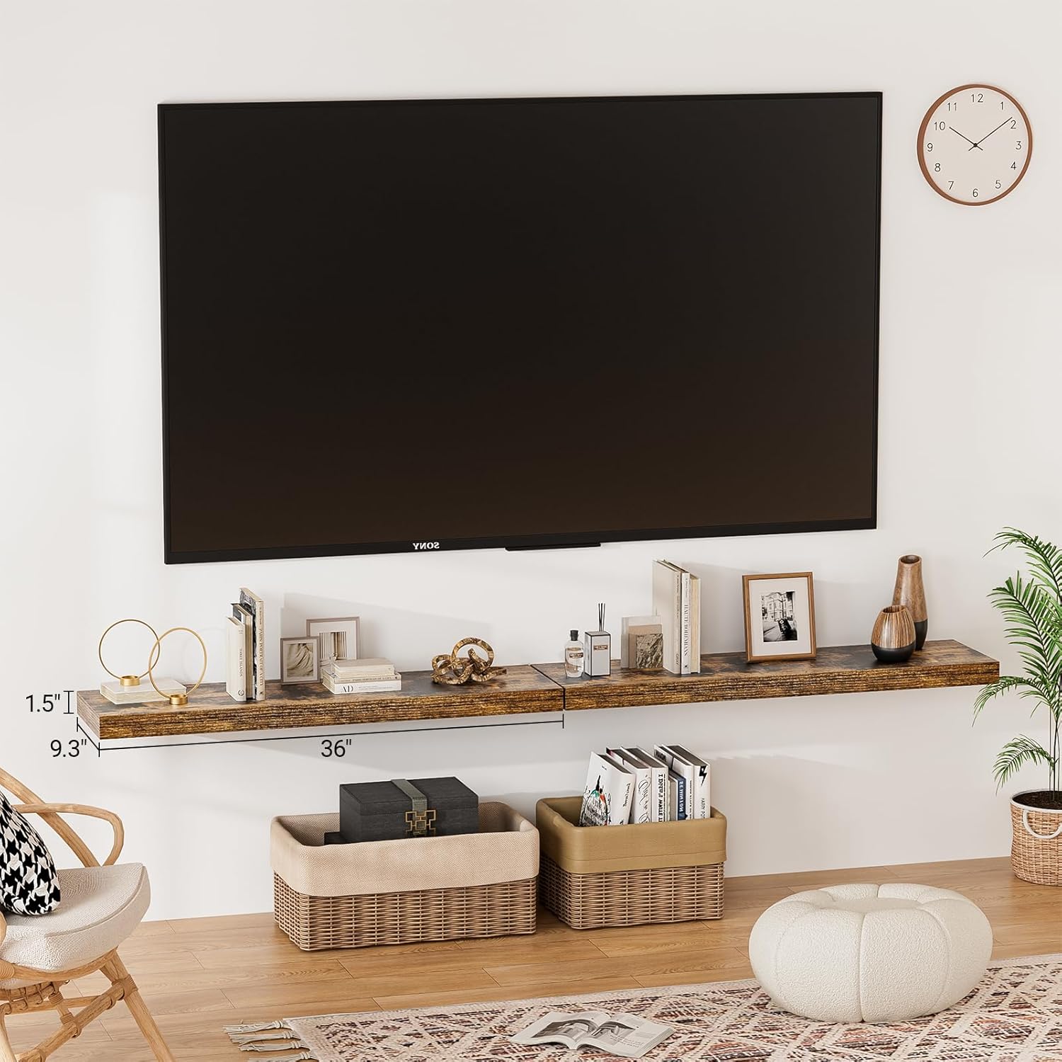 - ăModern Rustic LookăOur 36 inch floating shelves for wall are made from durable engineered wood,which blends well with modern and rustic farmhouse wall decor alike.The 36 in brown floating shelves for wall is available in colors & sizes,perfect for storing books,plants,collectibles,etc..