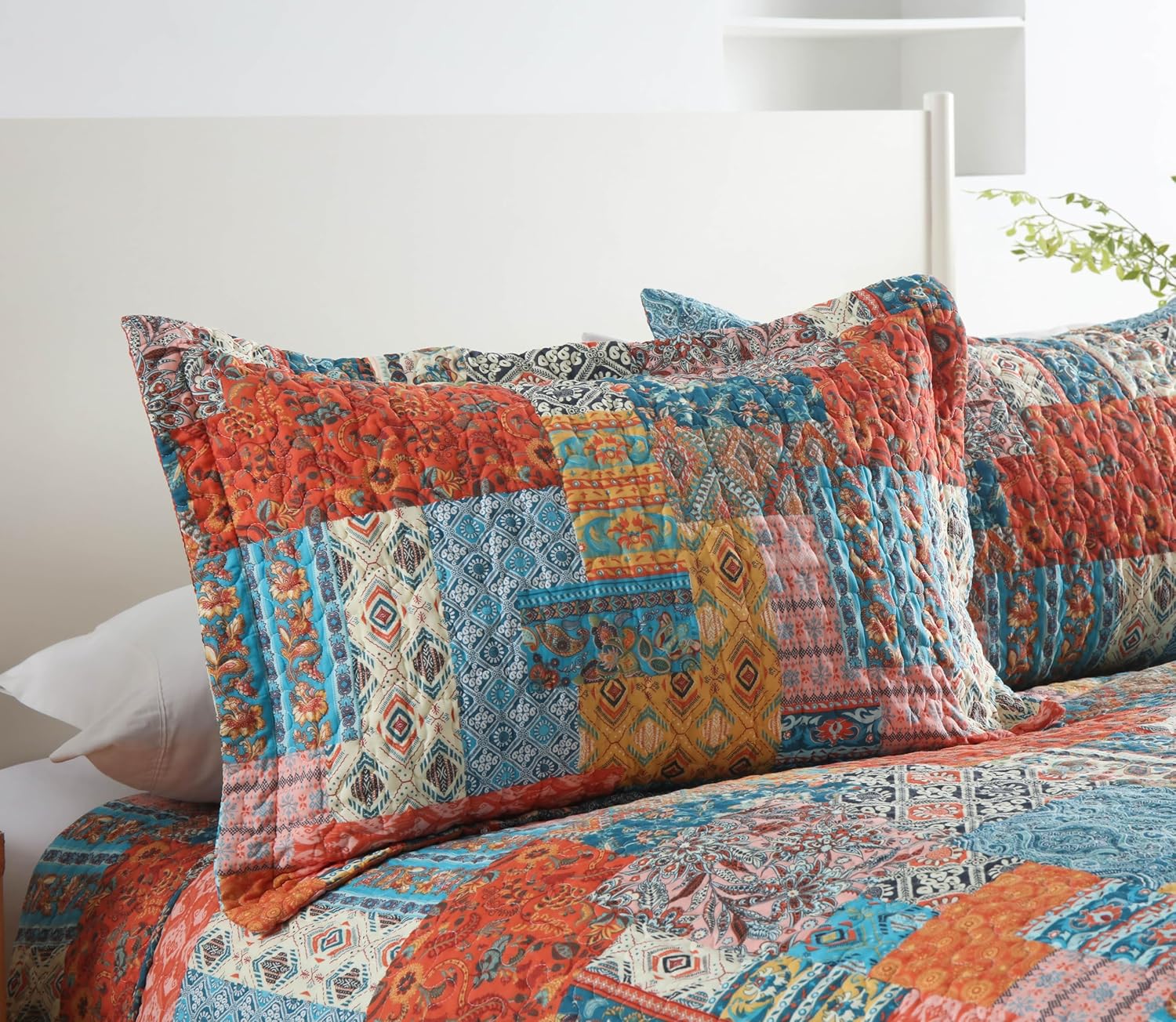 Cotton Bedspread Quilt Sets Reversible Coverlet Sets Comforters Vintage Bohemian Patchwork Bedspread,Orange,King Size