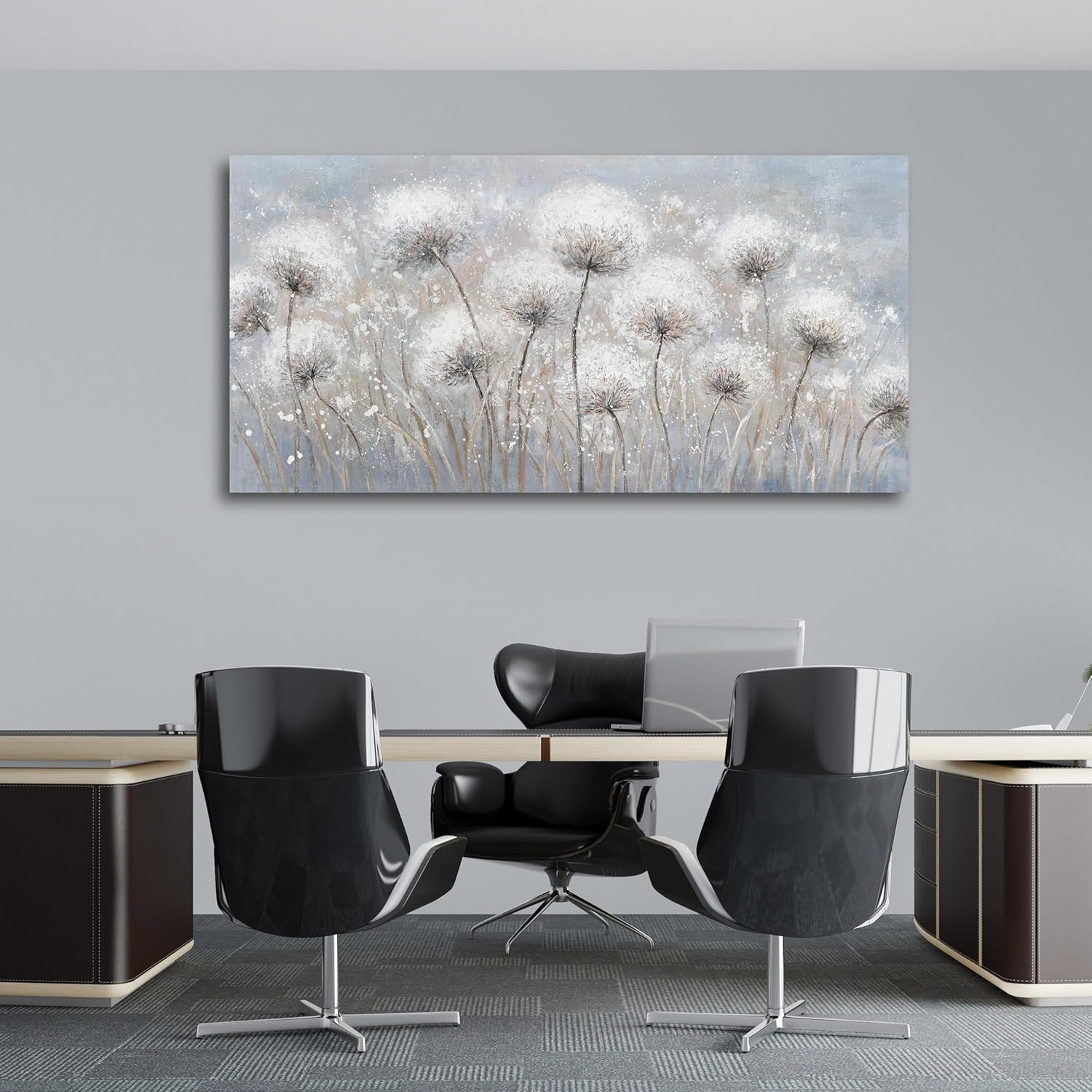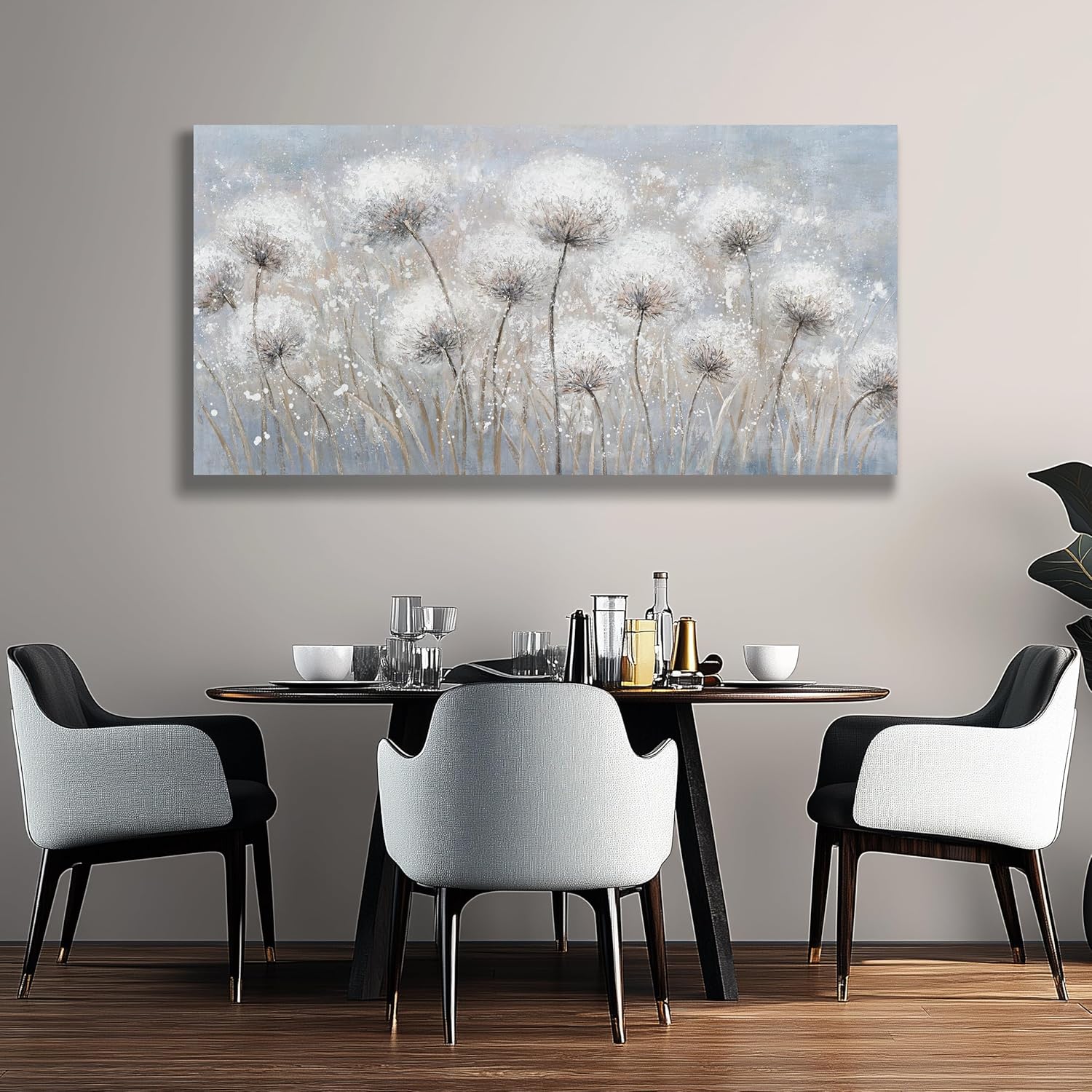 Belmrxne Large Dandelion Floral Wall White and Black Wall Decor Modern Aesthetic Artwork Trendy Canvas Painting for Living Room Bedroom Dining Room Office Home Decor 30x60 inch
