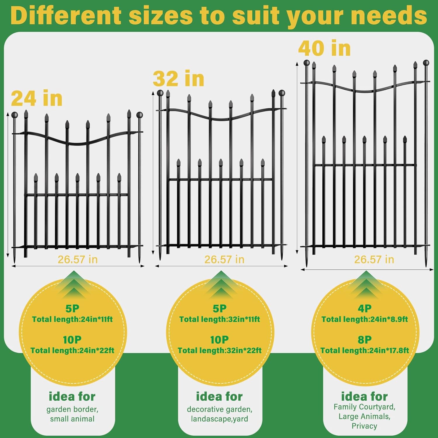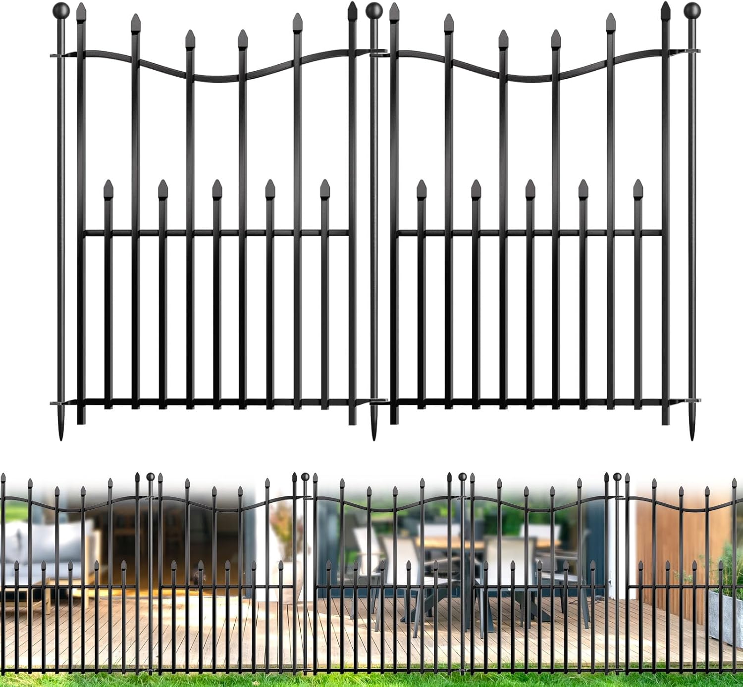 - 🛡️ Durable Coated Metal-Made from sturdy metal with a black protective coating, this decorative garden fencing is built to withstand outdoor weather. Offers both functionality and visual appeal for garden, patio, or backyard use.