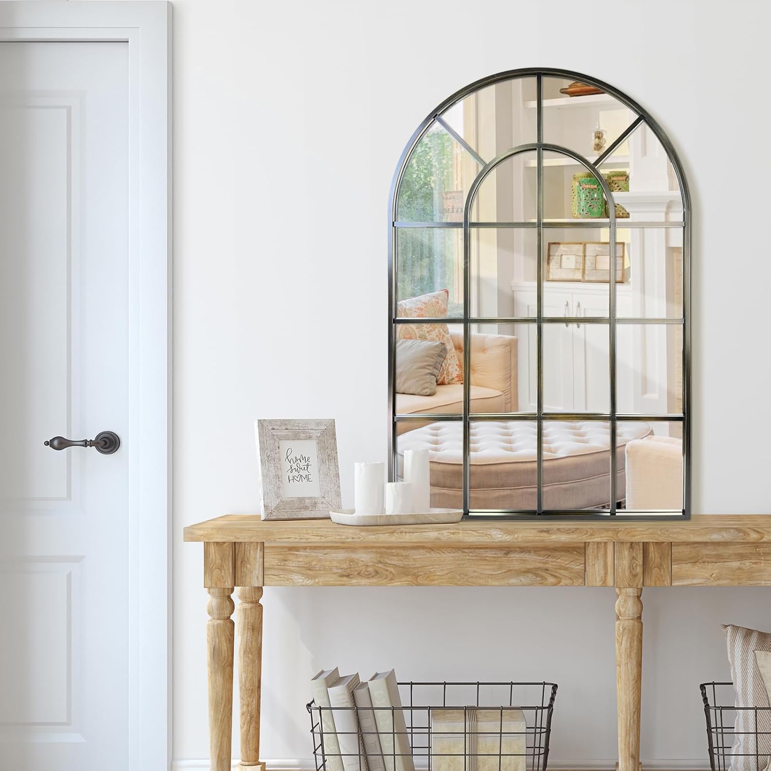 Arched Windowpane Wall Mirror 30"x40" Bronze Wall Mounted Art Pane Mirror Farmhouse Decorative Mirror Leaning Hanging Wall Mirror for Bedroom Living Room Entrance Hallway Wall Decor