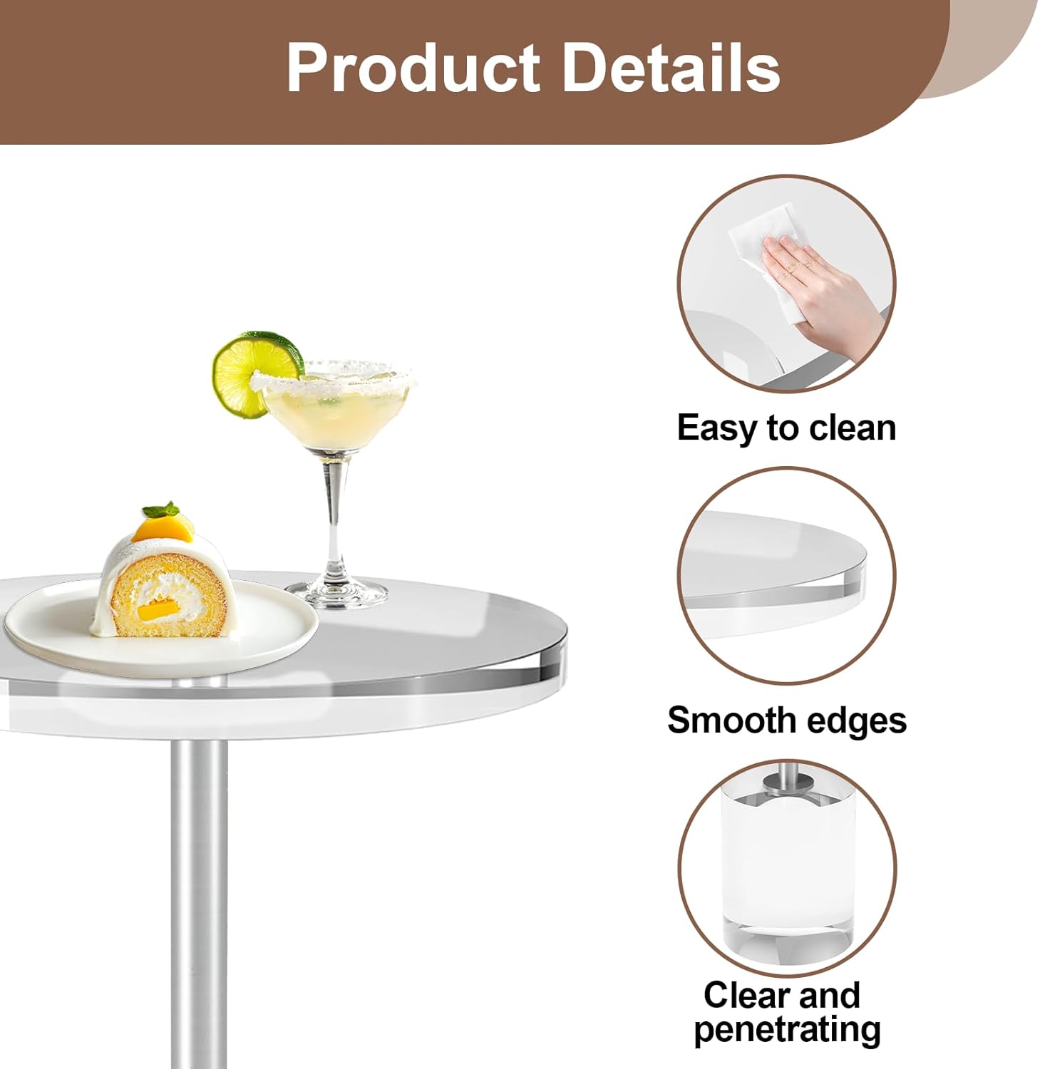 - ăModern & Minimalist DesignăThis acrylic end table features a circular countertop connected to a cylindrical base via slender columns. Its sleek, minimalist aesthetic complements various home decor styles. Blending decorative appeal with functionality, itâs ideal for living spaces.