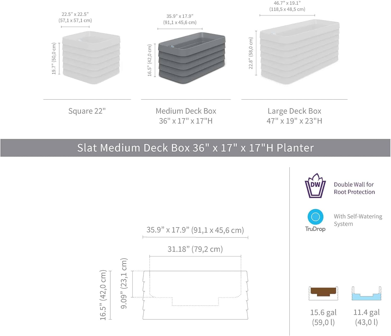 - All Weather Planter: The Slat weather-resistant planter box is built to endure both hot summers and cold winters, backed by a 10-year warranty. Its double-walled construction protects roots and ensures lasting durability for indoor and outdoor use.