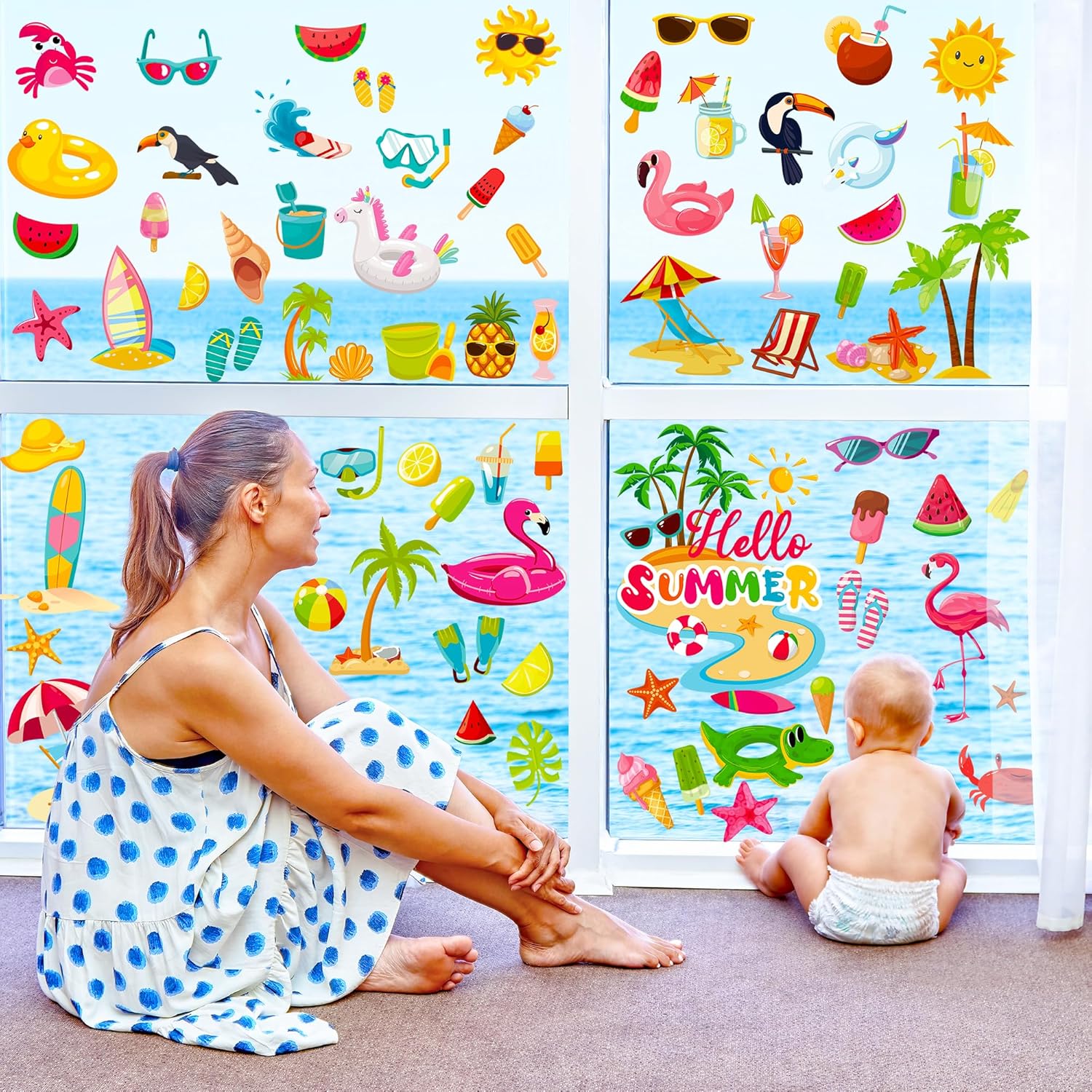 - Package Includes: You will receive 9 sheets(82 pieces) summer window clings, which measure 7.87 Γ11.8 inches to decorate your home and celebrate summer.