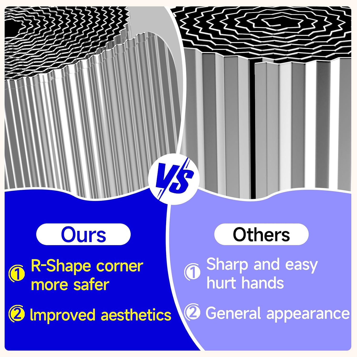 - Clean and Stylish Design Our narrow corrugated metal edge feature rounded R-shaped corners and smooth, rounded, rolled top and bottom edges ,for added security,It not only enhances the aesthetics of your garden, flower bed, or lawn but also ensures a polished and clean look for any outdoor space.