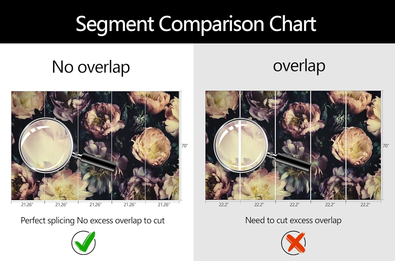 - Mural Size: The total size of this mural wallpaper is 106" x 70" / 270CM x 178CM (W x H), cut into 5 pieces, each measuring 21.26" x 70", for easy installation.