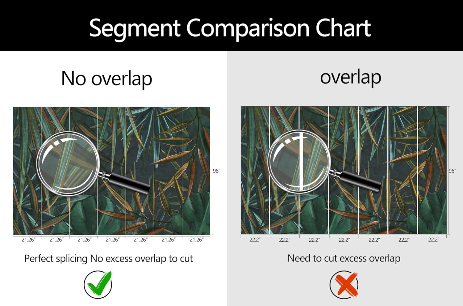 - Mural Size: The total size of this mural wallpaper is 149" x 96" / 378CM x 244CM (W x H), cut into 7 pieces, each measuring 21.26" x 96", for easy installation.
