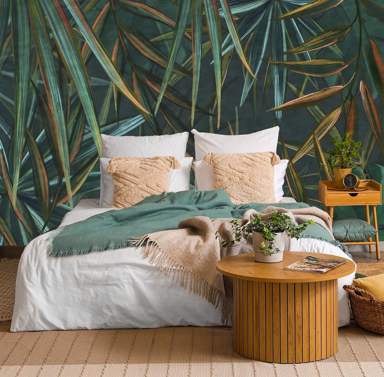 Dark Tropical Palm Leaf Wallpaper Mural Oil Painting Style Abstract Leaves Wall Mural (Not Peel and Stick)
