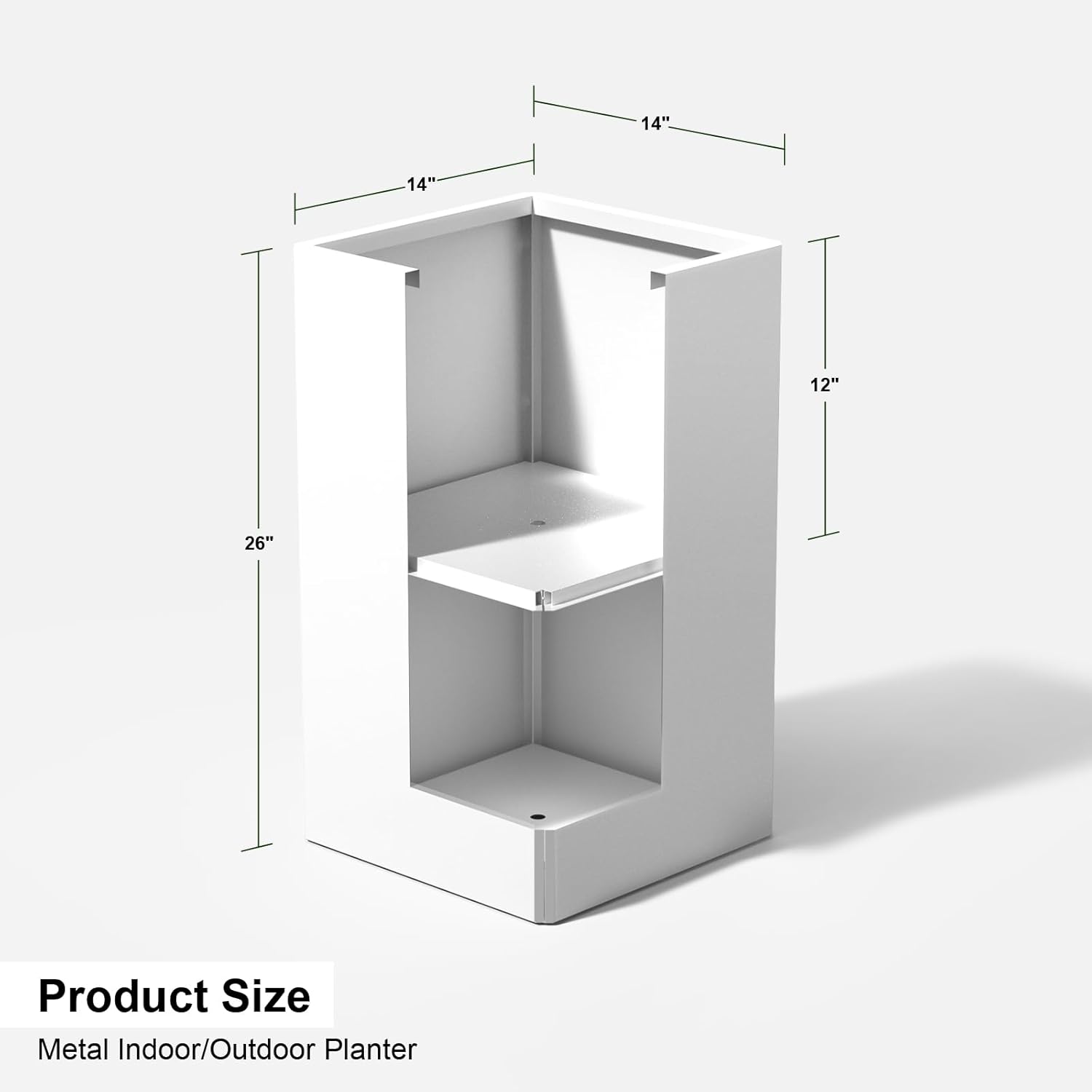 - White & Tall Metal Planter - 14" L x 14" W x 26" H, The tall planter box is equipped with 24 screws, a wrench, protective gloves and instructions. Note: This large metal outdoor flower pots needs to be assembled