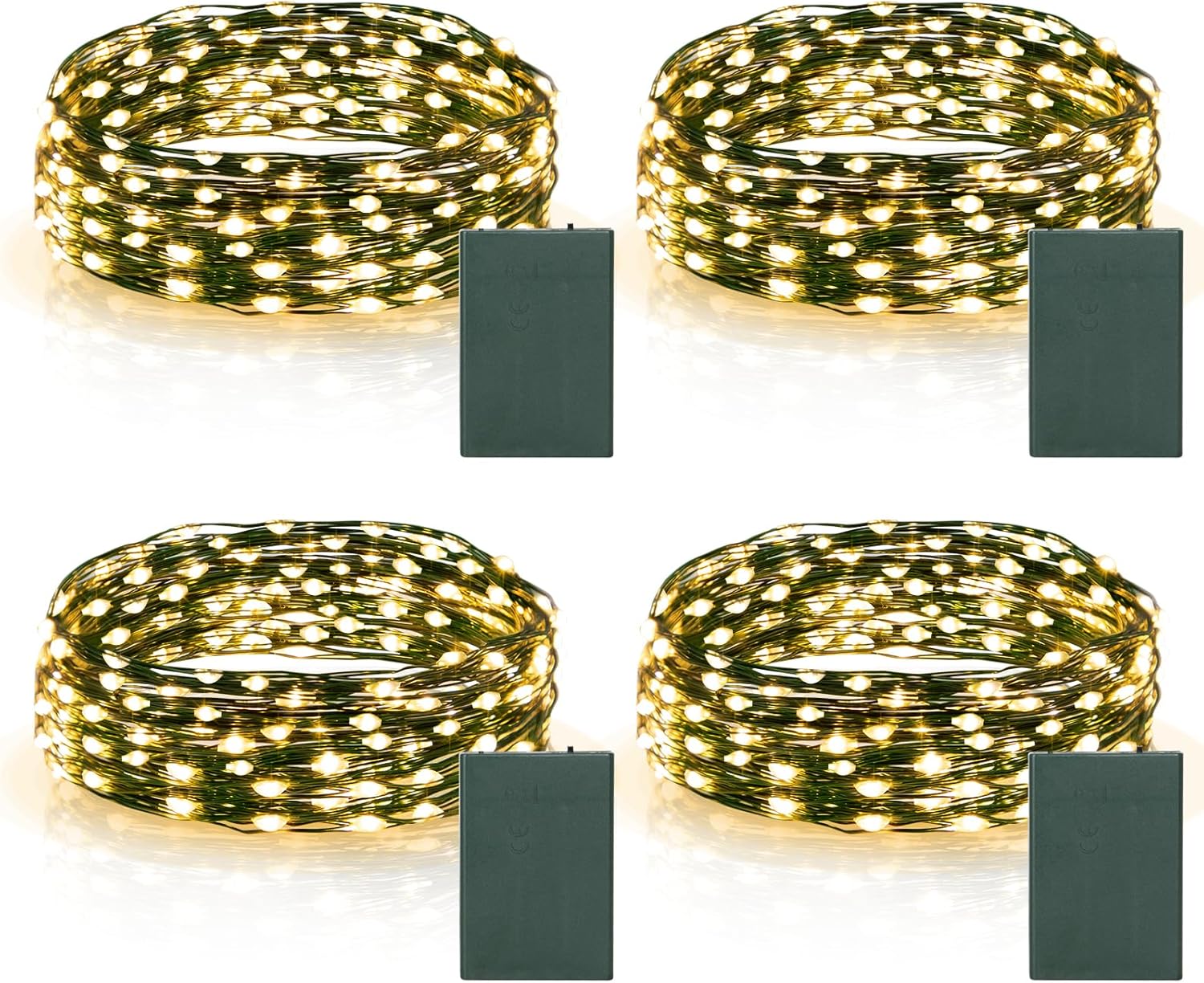 - 4-Pack Fairy Lights: The battery-powered fairy lights are 16.4 ft long (about 5 meters) and come with 50 LED beads. The dark green copper wire is perfect for Christmas decoration