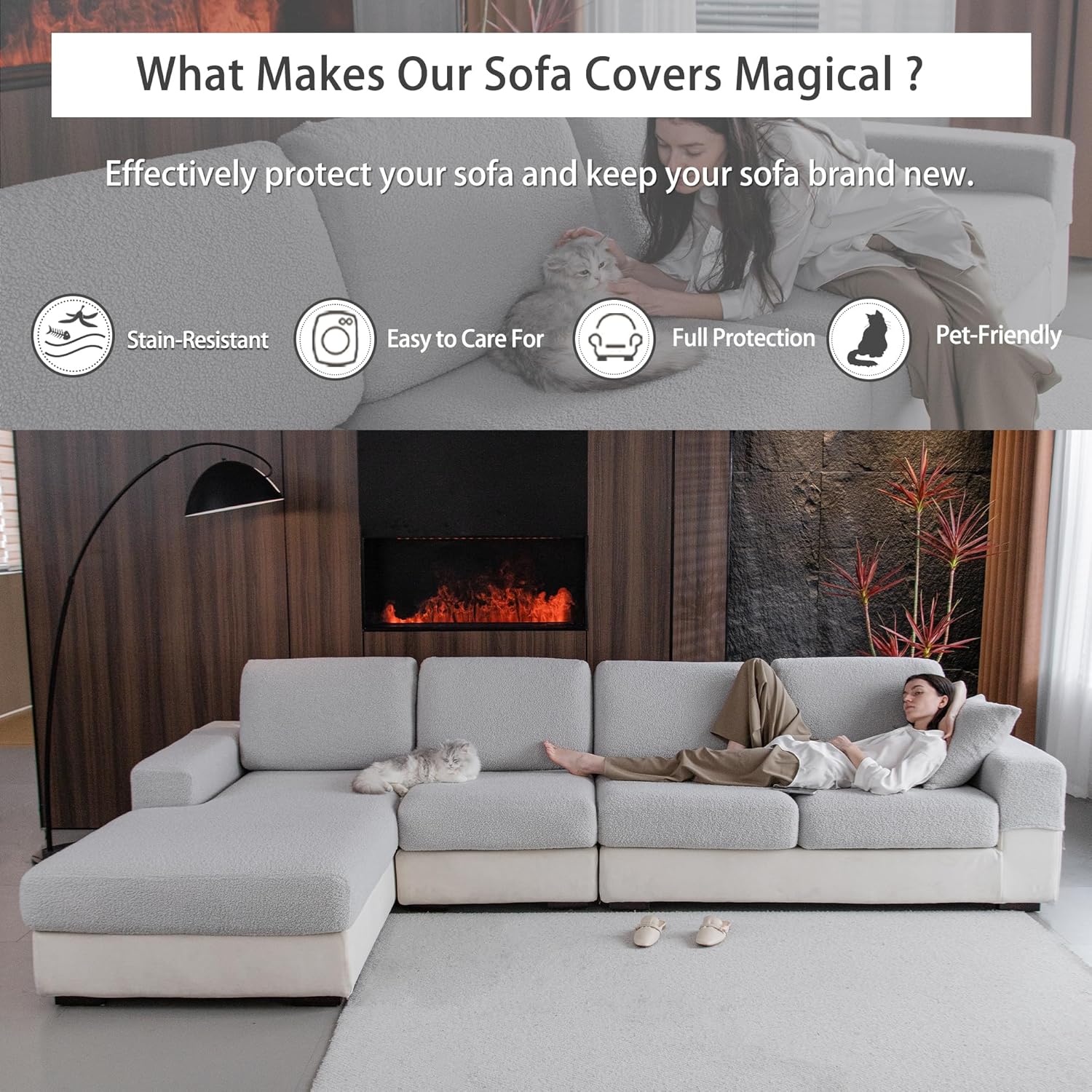 Couch Cushion Covers for Sectional Sofa, Stretch Soft Sofa Slipcovers Washable Wear-Resistant Universal Furniture Protector for Living Room(3 Seaters Covers, Light Gray)