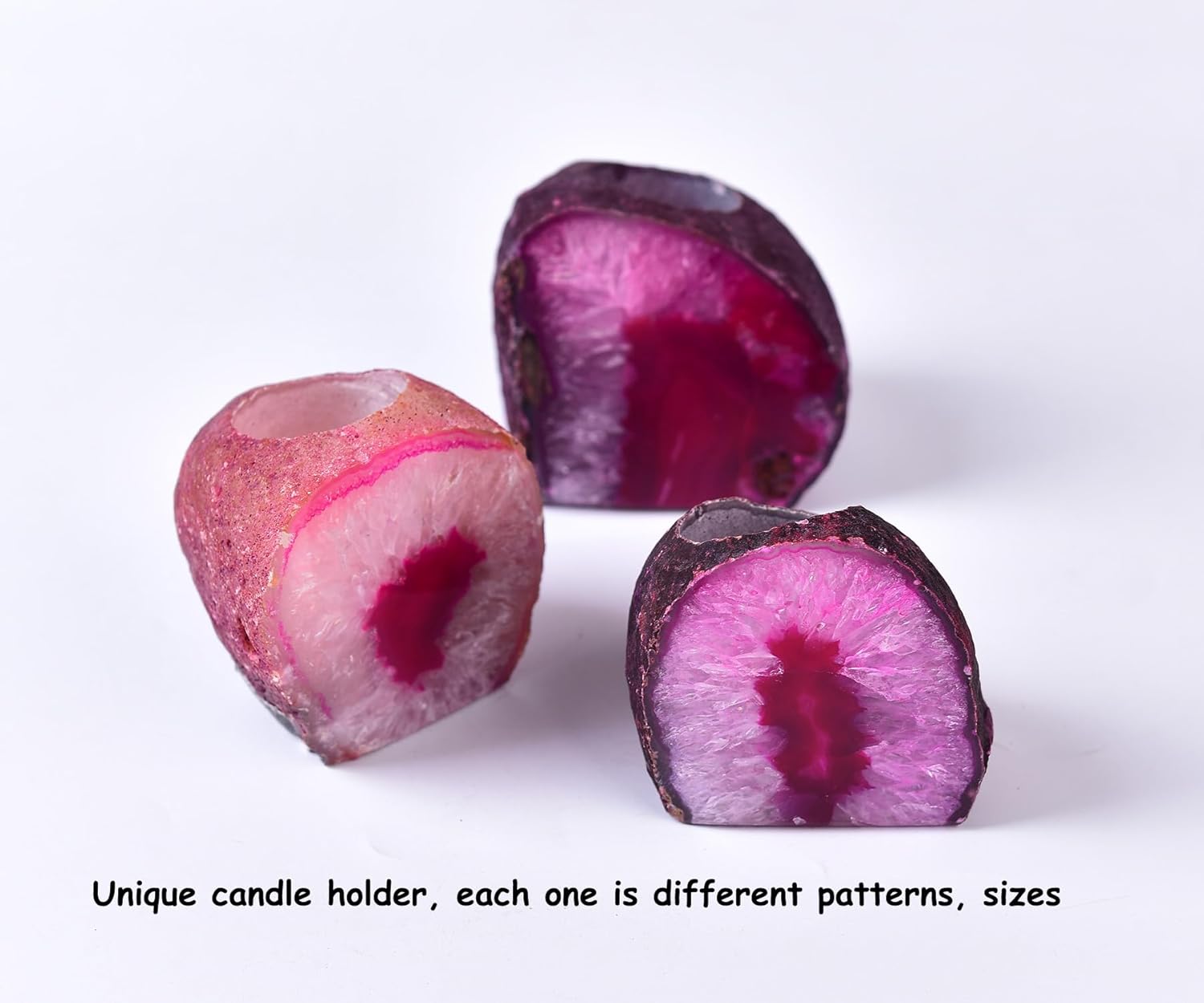 AMOYSTONE Dual-Purpose Agate Stone, 1-1.5lb Plant Terrarium & Candle Holder Base, for Boho Home Office Accent