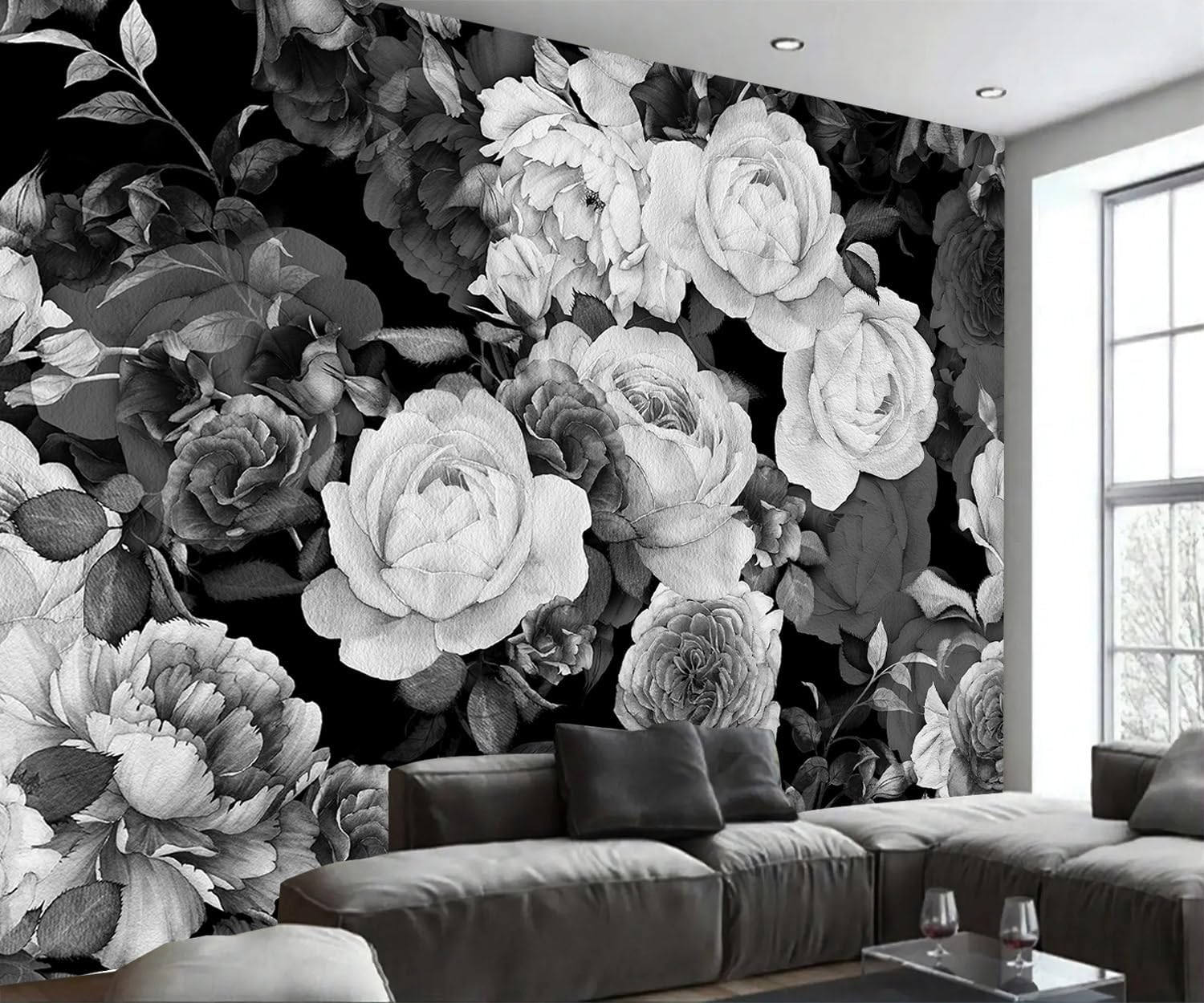 AFZEVEB-Dark Peony Wallpaper Watercolor Rose Wall murals for Bedroom 136"x96" (Not Peel and Stick)
