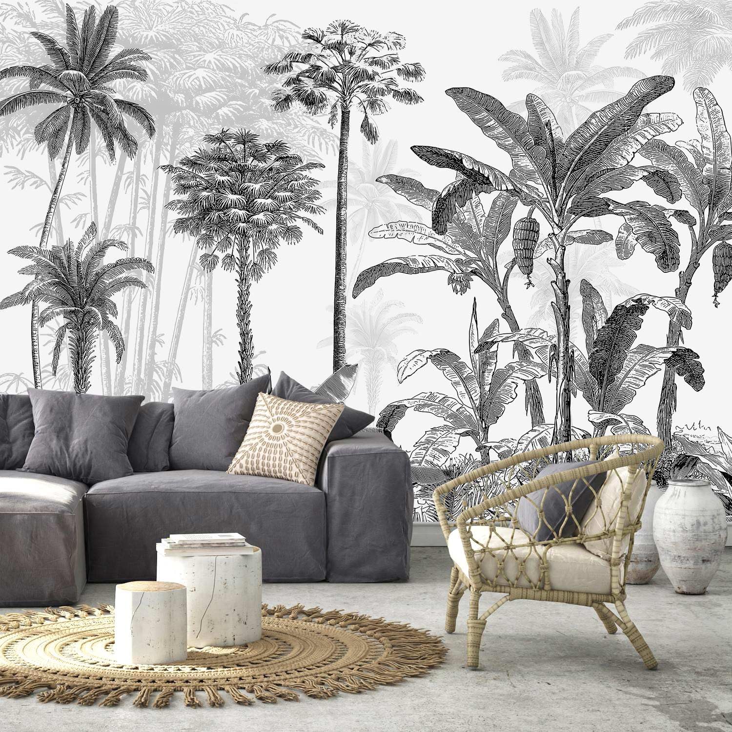 AFZEVEB-Black and White Jungle Wallpaper Hand-Painted Tree Wall murals for Bedroom 136"x96" (Not Peel and Stick)