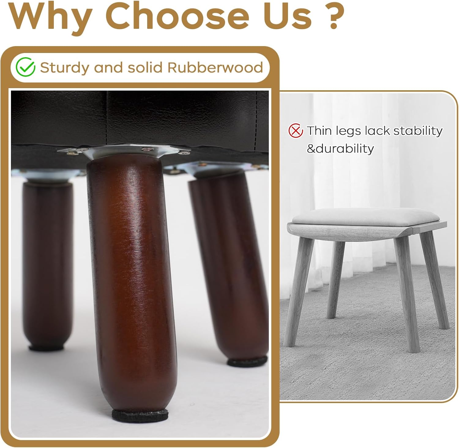 - ăAnti-Slip Designă- These leather foot stools small ottoman rubber legs come with dedicated felt pads to prevent scratches on floor and keep it from sliding.Wood leg with non-slip felt pad is quiet when moving, and can avoid leaving scratches on floor.The small footstool is perfect for small spaces and is compact enough not to get in anyone's way.
