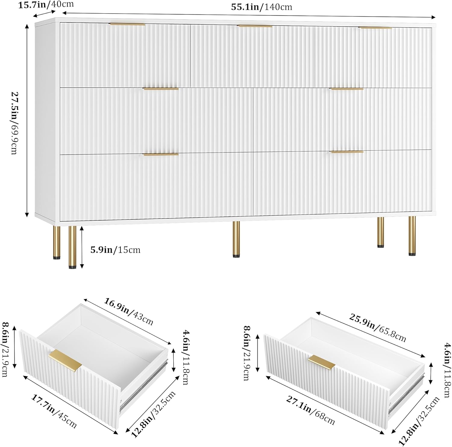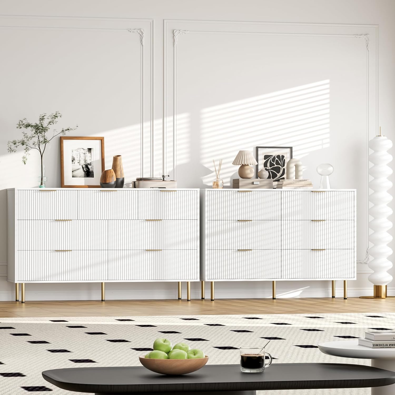 - Elegant Design: Featuring a stylish fluted design and chic gold handles, this modern dresser adds a touch of sophistication to any room decor.