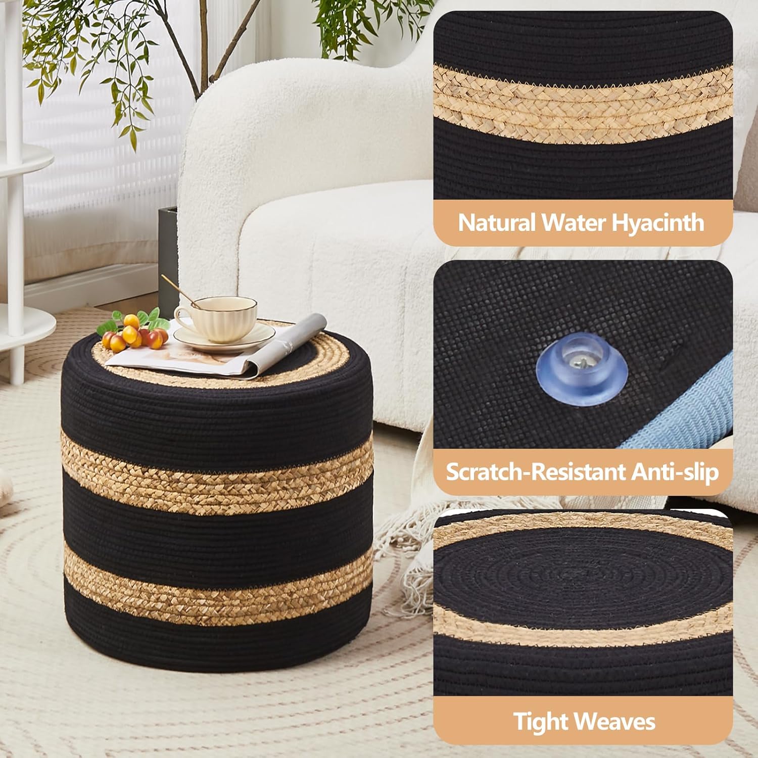 - 100% Handmade Cover: Pouf Ottoman is made of sustainable, and durable natural seaweed & corn husk braid.High-end sewing technology makes natural materials more tight and not easy to open