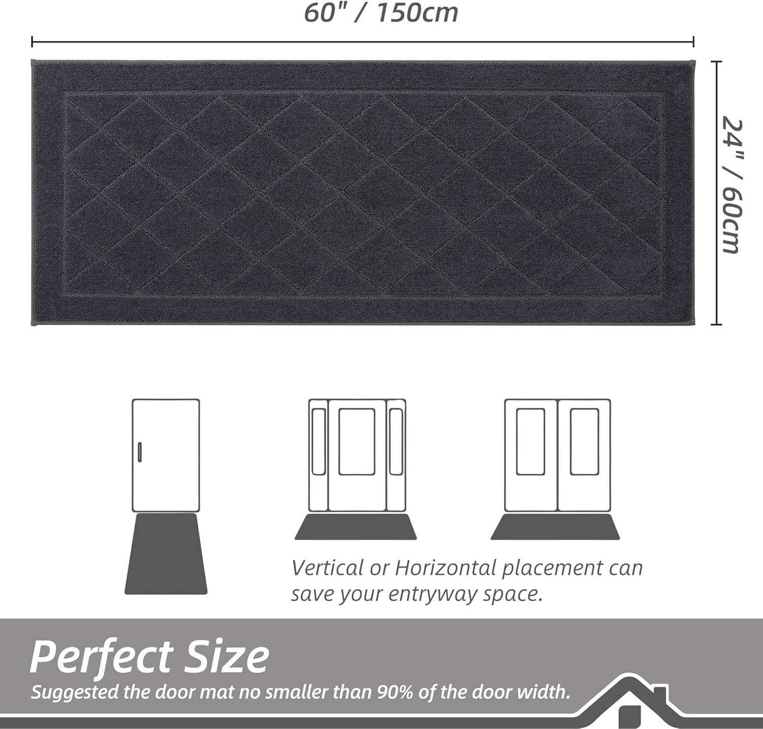 BEQHAUSE Dirt Trapper Door Mat 24" x 60", Doormat Non-Slip Entryway Rugs Washable, Dog Door Mat Stain Resistant and Absorbent Welcome Floor Mat for Front Back Door, Muddy Wet Shoes & Paws, Dark Grey