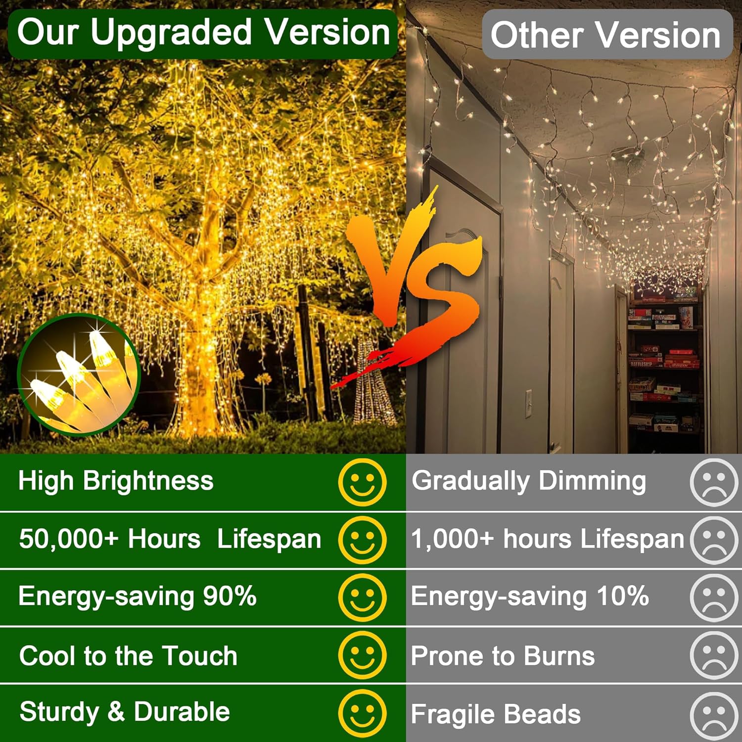 66FT 666 LED Outdoor Christmas Lights - 148 Ice Drops, 12 Pro Modes with Timer Memory & Brightness, Waterproof Hanging Ice String Light for Holiday Wedding Garden Fence House Decor (Warm White)