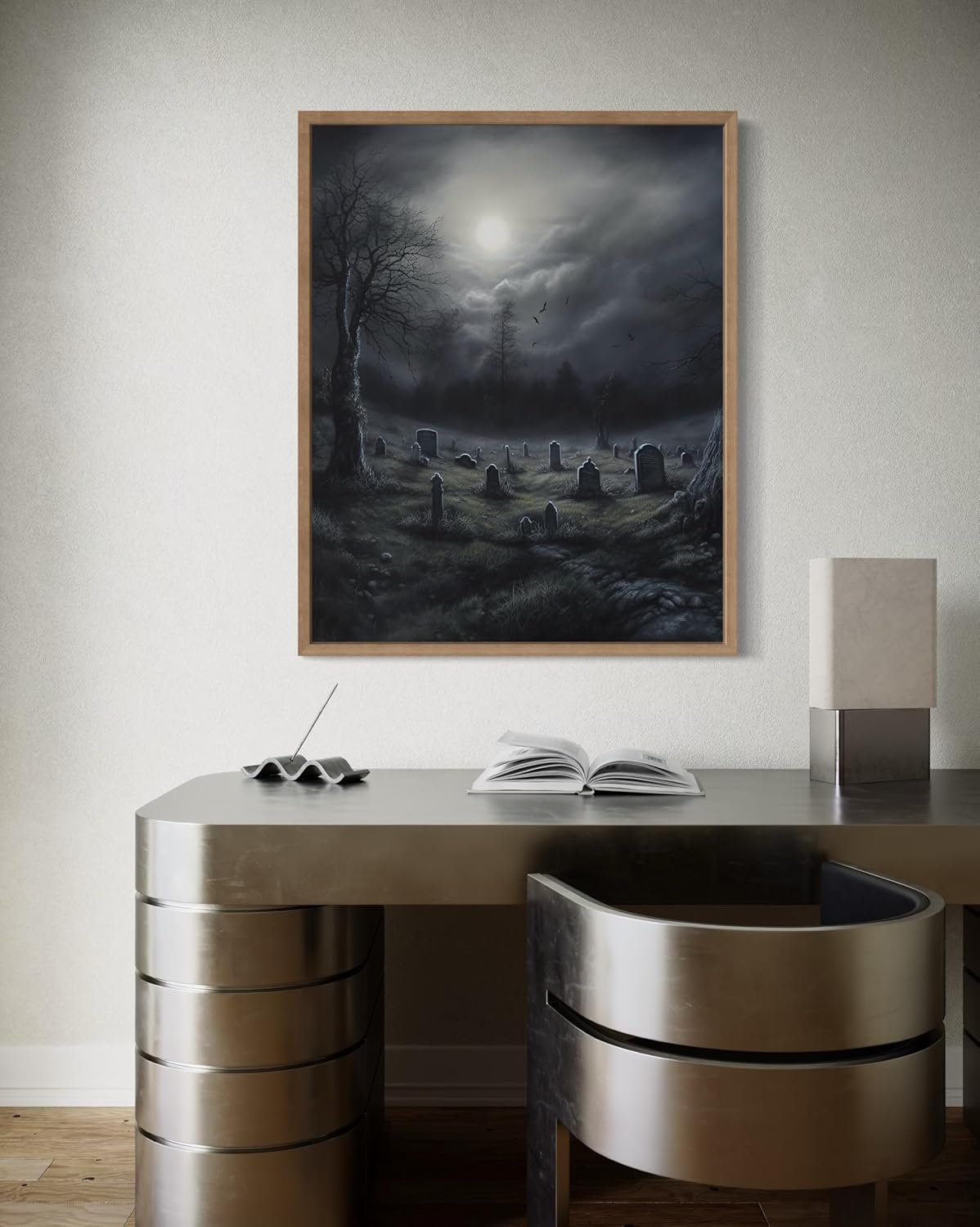 Gothic Graveyard Poster Art Print, Halloween Scary Vintage Wall Art Academia Spooky Painting Decoration for Horror Prints, Posters Bedroom Decor 89 (Gothic Graveyard, 11 x 14 inches, Wood Frame)