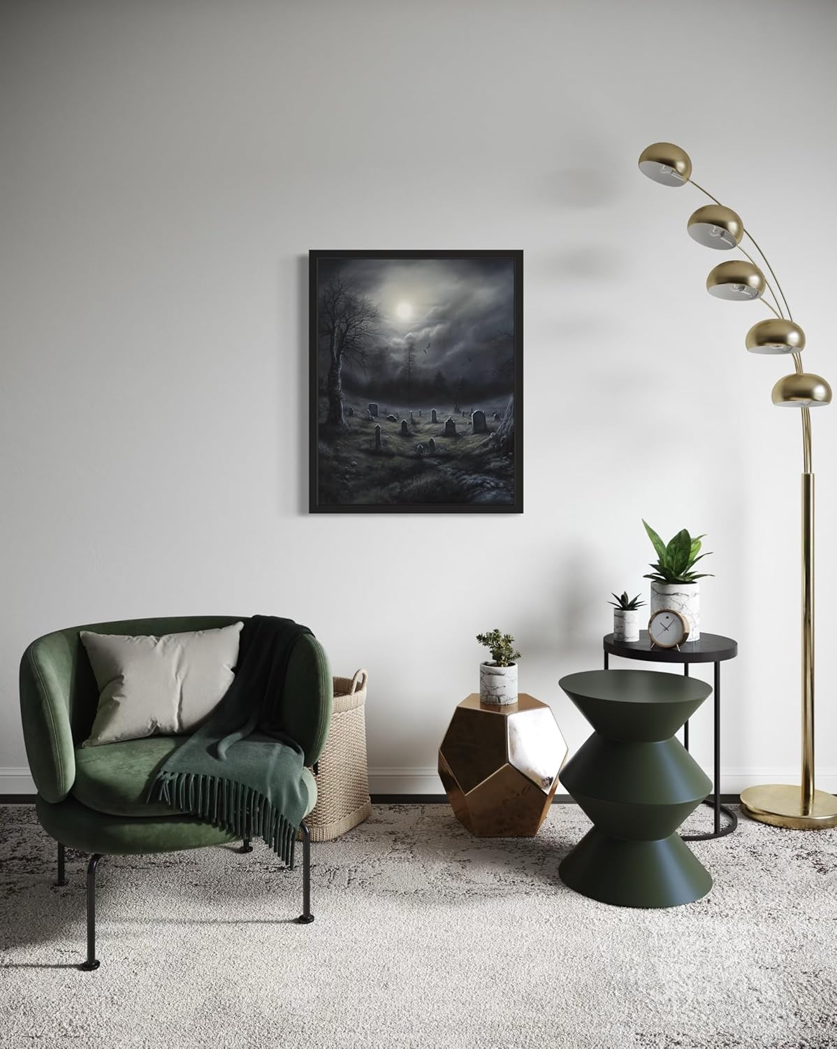 Gothic Graveyard Poster Art Print, Halloween Scary Vintage Wall Art Academia Spooky Painting Decoration for Horror Prints, Posters Bedroom Decor 89 (Gothic Graveyard, 11 x 14 inches, Black Frame)