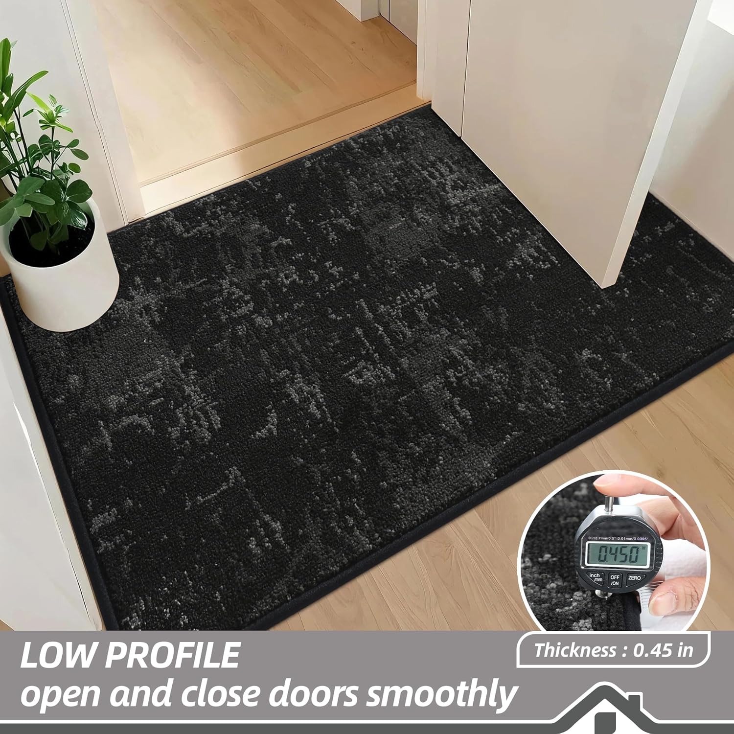 - LOW PROFILE DESIGN: Our doormats are 0.45" thick, low-profile design and reinforced overlock edges to ensure that doors won't get stuck or the door rug go curling. Suitable for front door, back door, entryway, indoor entrance, etc. Note: Please confirm the height of the door gap before purchasing