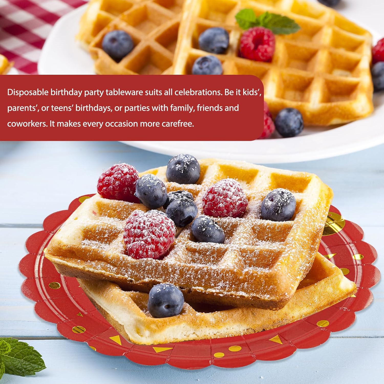 - 【SUPERIOR QUALITY】: Made from thick and food grade 350gsm heavy duty paper, these disposable red birthday plates are strong, environmentally friendly, odorless, heat resistant. The surface is made of a waterproof membrane, so that your red cake plates can be used with more peace of mind.