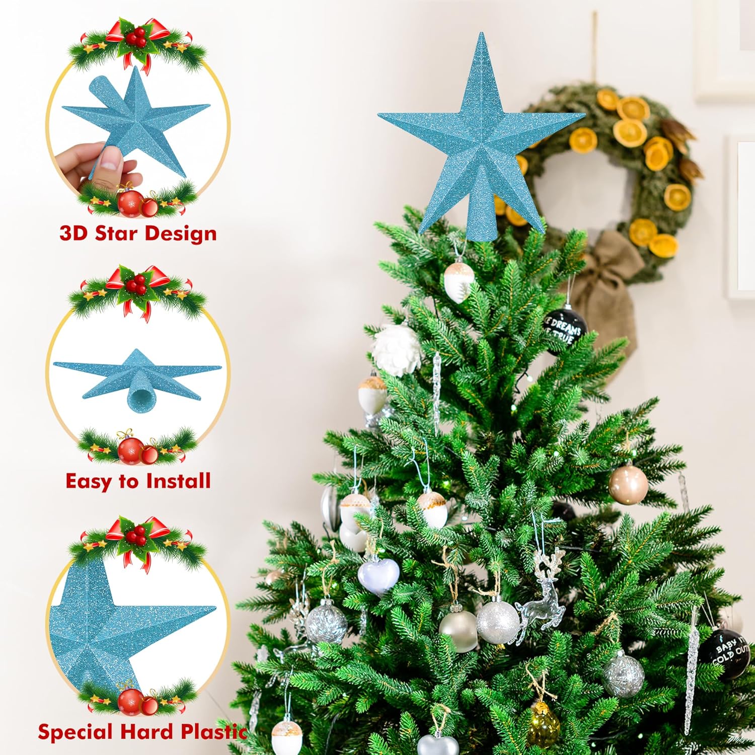 - Size Compatibility - This tree topper star, with a 4-inch diameter, is suitable for decorating Christmas trees of 3 to 4 feet tall.