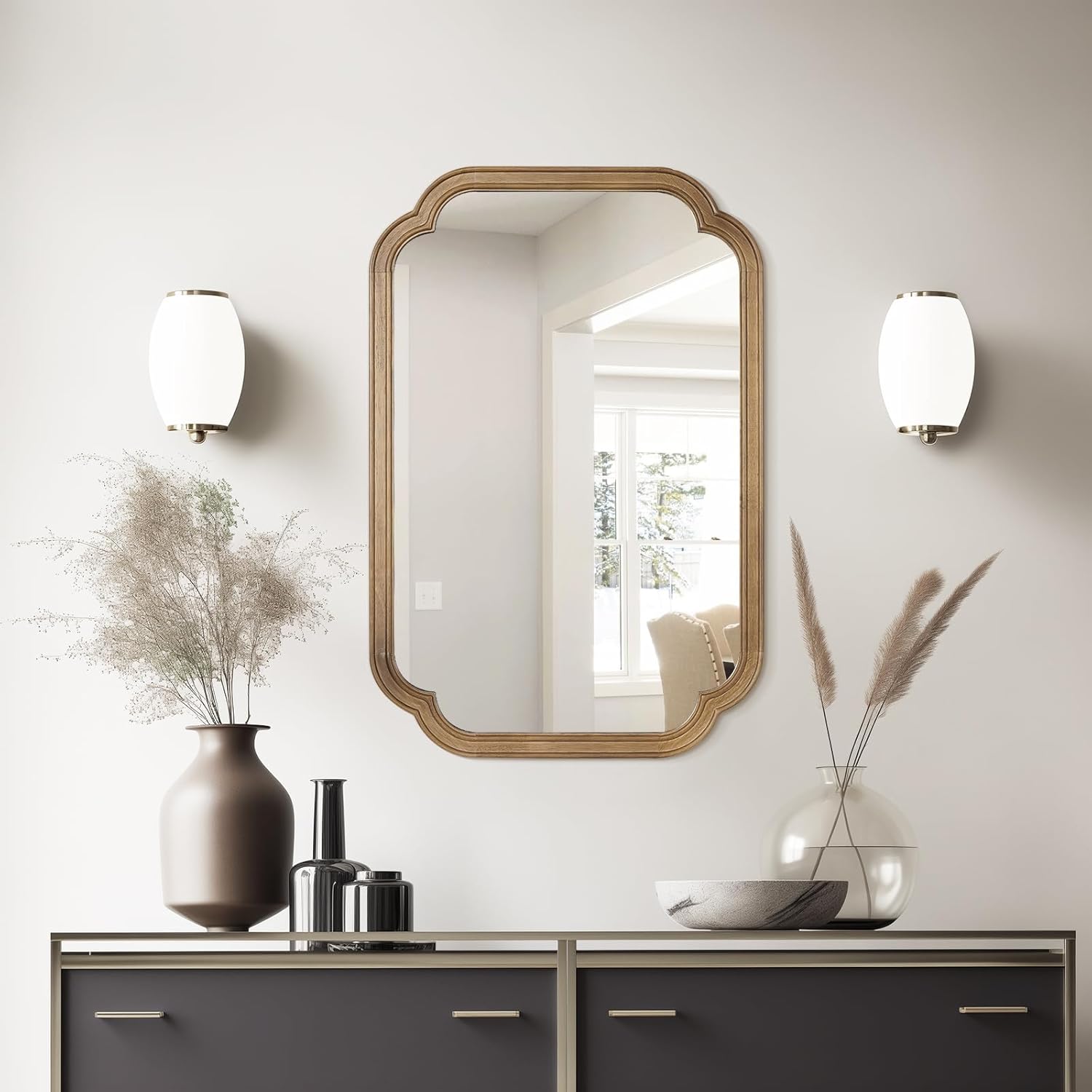 WallBeyond 20" x 30" Rounded Corner Arch Wall Mirror with Wood Frame for Entryway, Living Room or Bedroom Home Decor - Light Woodgrain, Honey-Colored