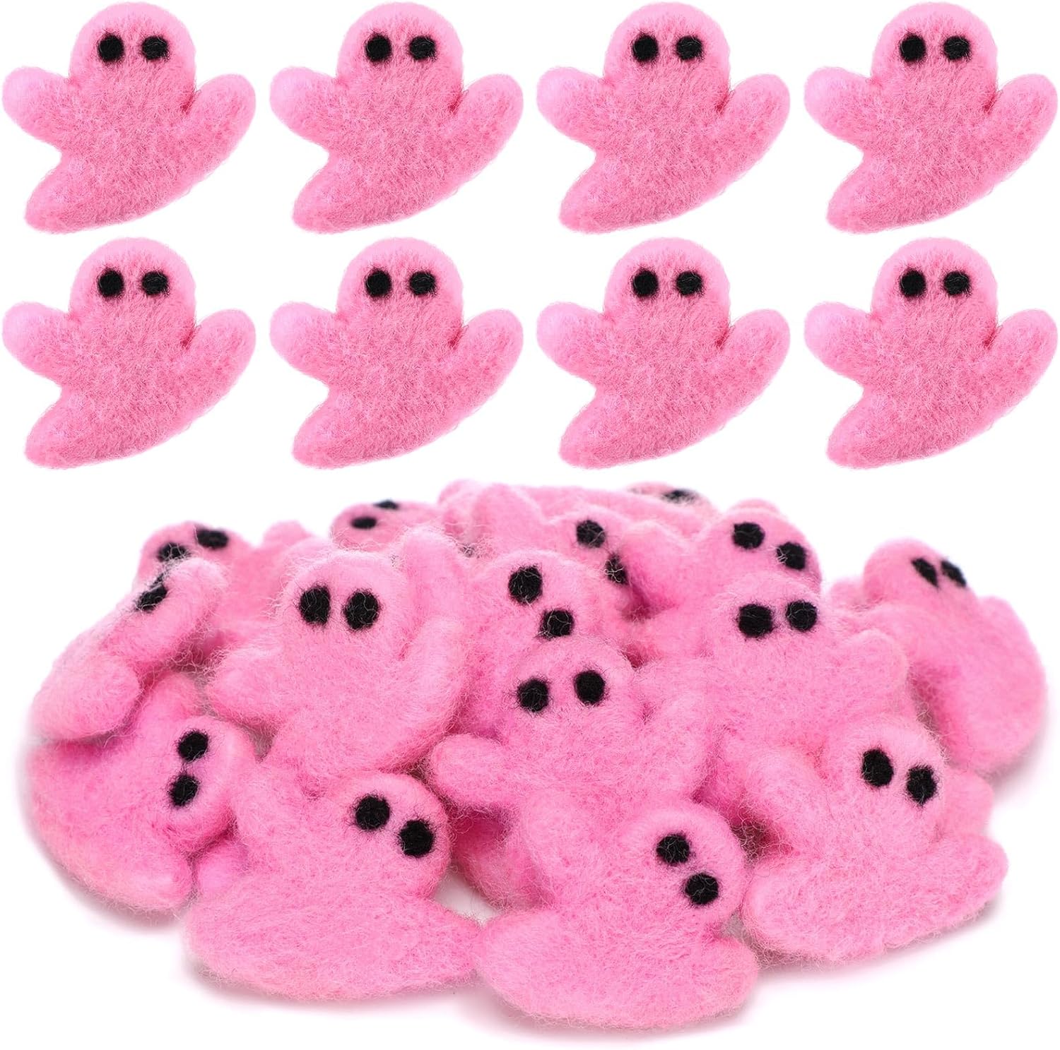 24 Pcs Halloween Felt Ghosts Wool Felted DIY Ornament Ghost for Halloween Party Decoration Home Indoor Outdoor Supplies(Pink)