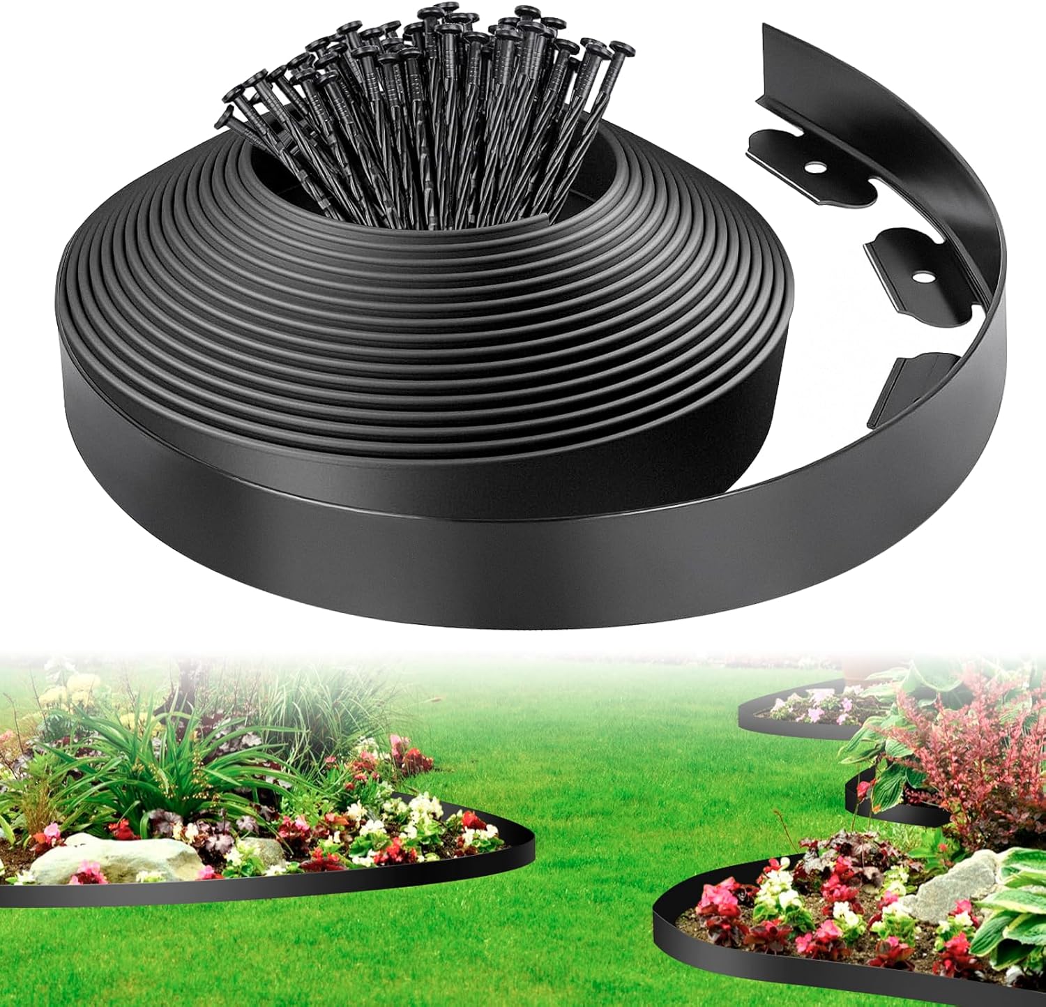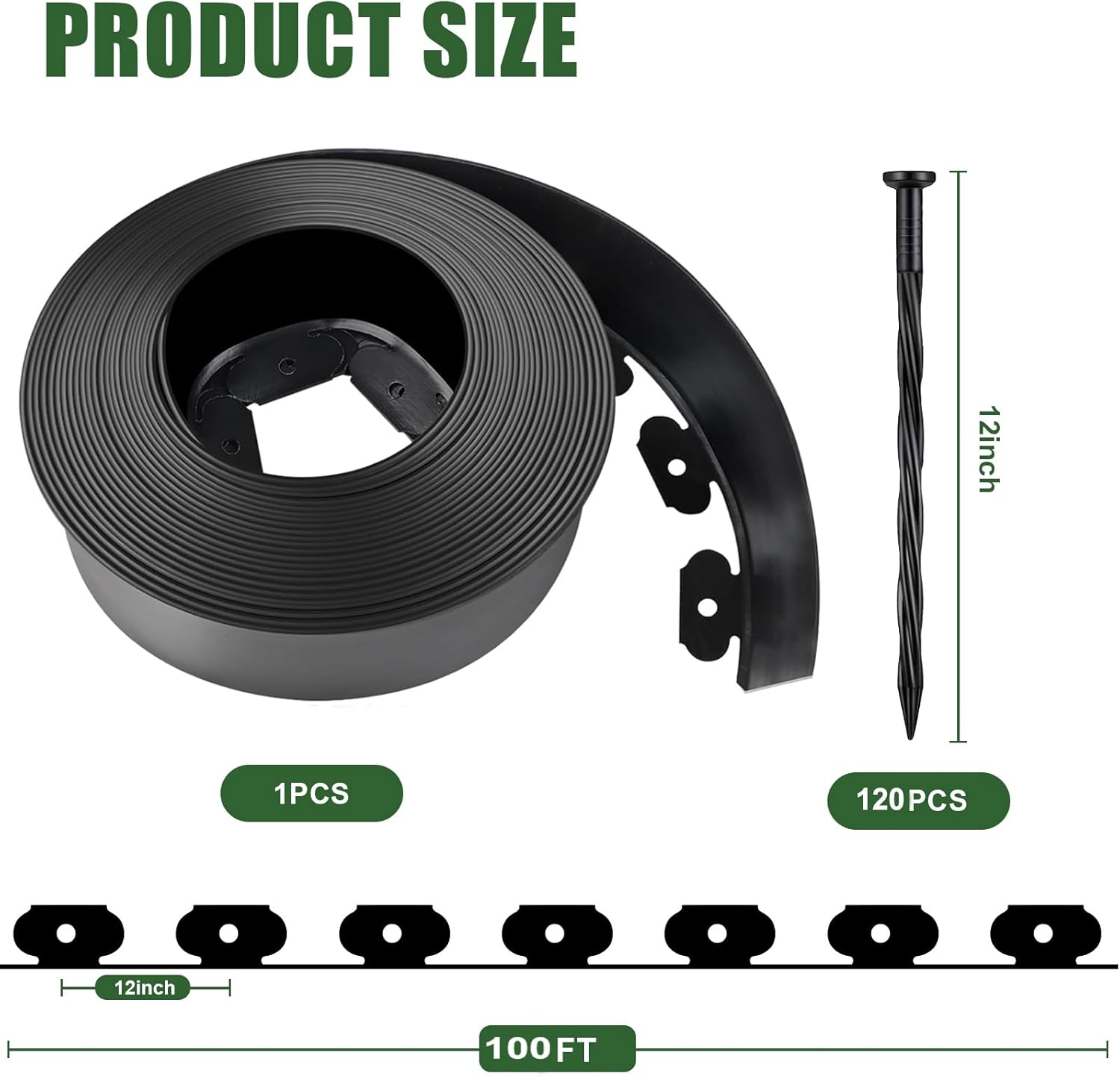- What You Get: Includes a 100-foot-long, 4-inch-high roll of lawn edging and landscape border, complete with 120 spikes. Providing everything you need for a neat and tidy look.
