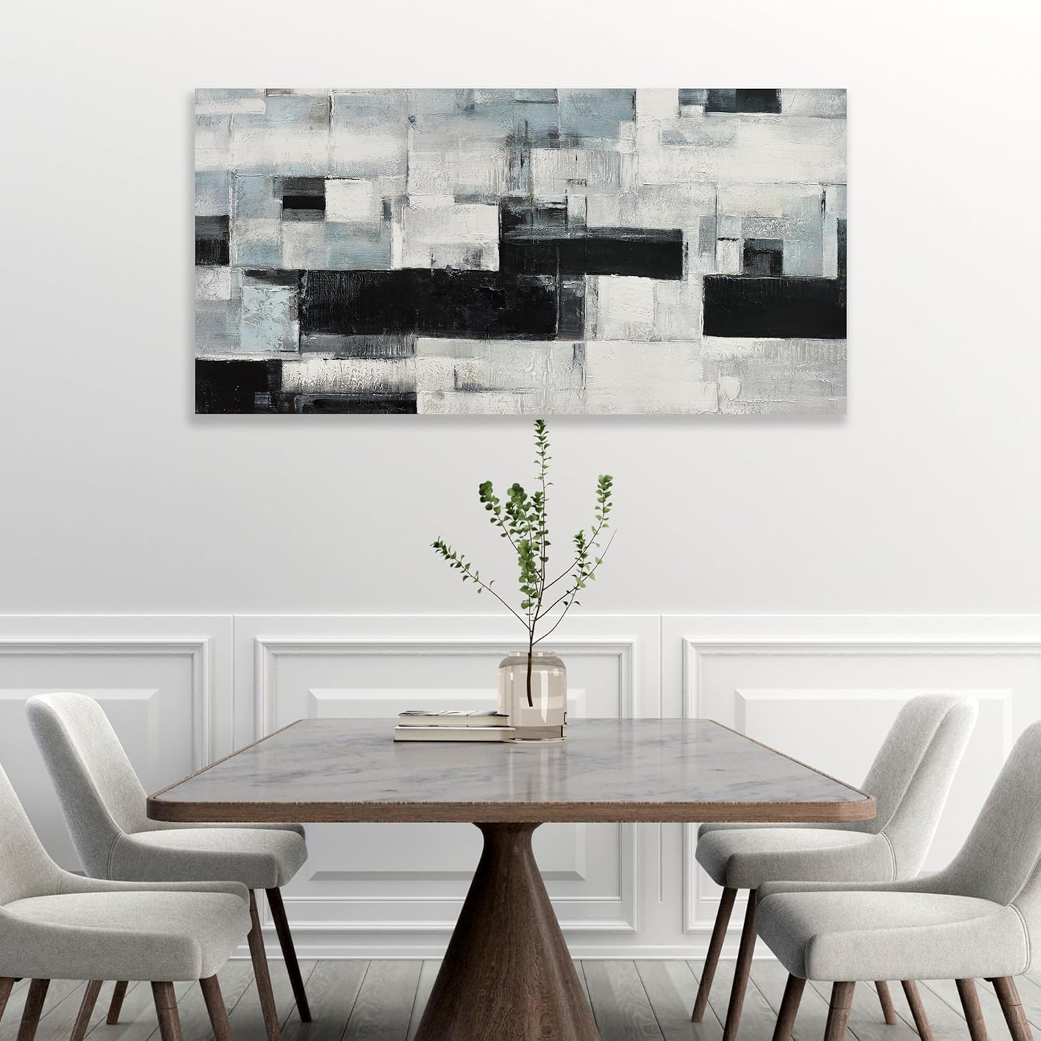 Glvzygy Abstract Wall Art Room Decor Black White and Gray Plaid Minimalism Picture Abstract Art Wall Decor Modern Abstract Wall Art Canvas for Living Room Bedroom Office 24"x48"