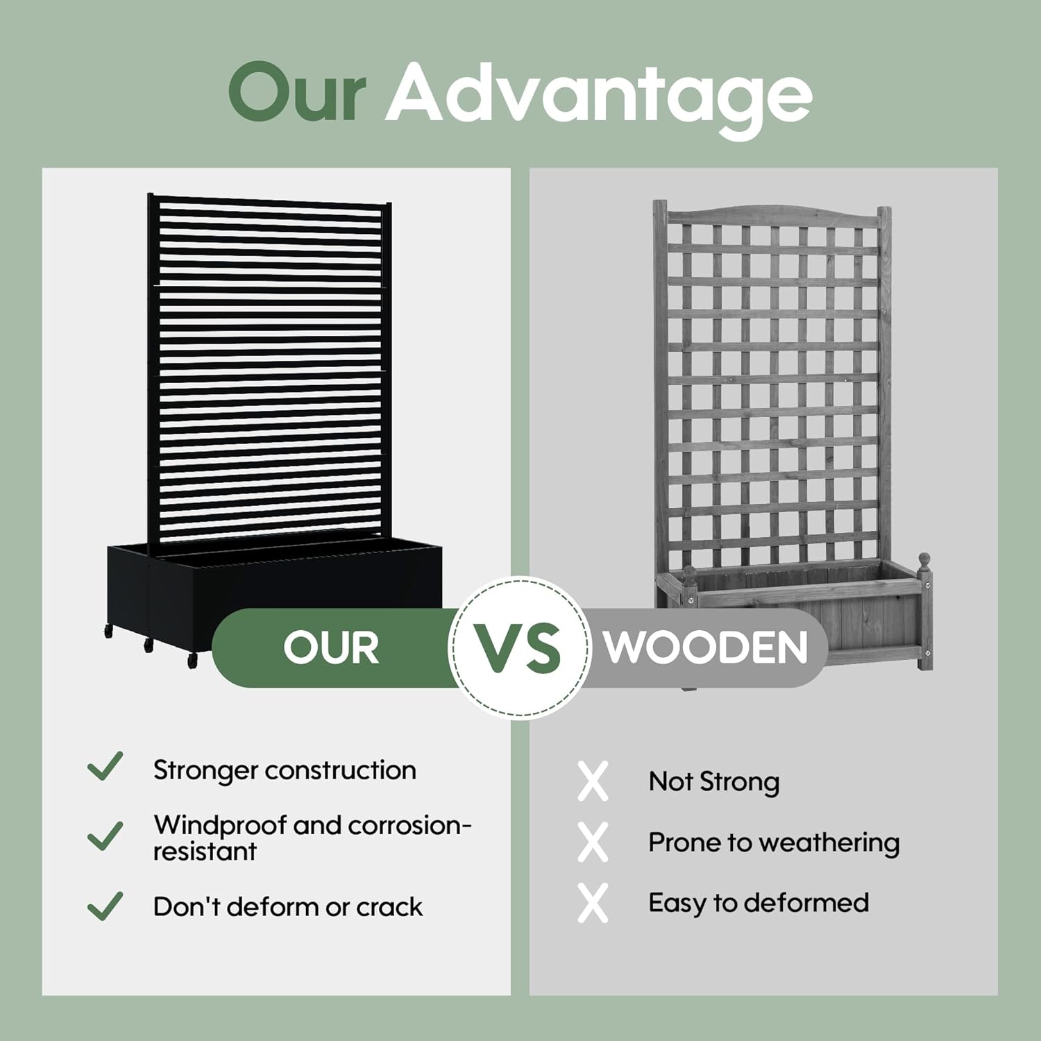 - Versatile Design--This metal planter with trellis serves triple purposes as an elevated garden bed for flowers/plants, a sturdy trellis for climbing flora, or a stylish privacy screen to enhance outdoor living spaces. Its adaptable structure makes it the ultimate gardening solution for diverse needs.