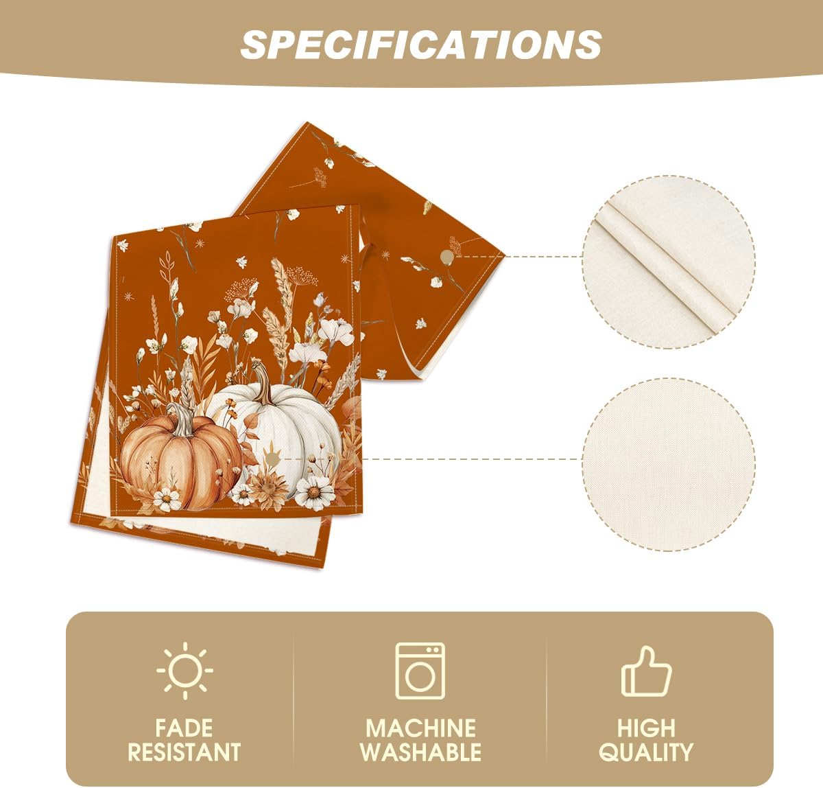 Artoid Mode Orange Pumpkins Leaves Flowers 210 GSM Fall Table Runner, Seasonal Autumn Kitchen Dining Table Decoration for Home Party Decor 13x108 Inch