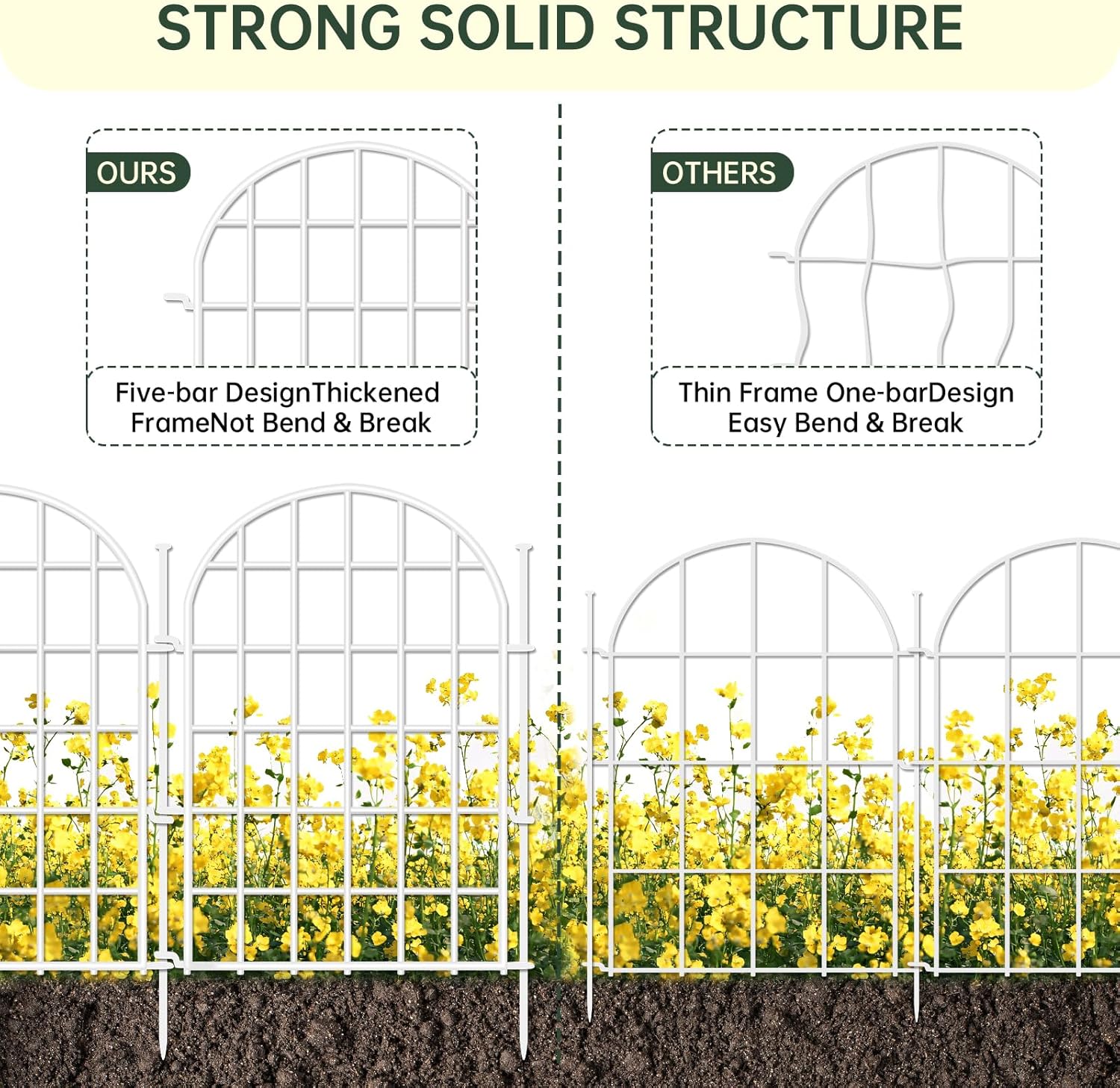 - 【5-LAYER HORIZONTAL BAR DESIGN】 Engineered with 5 reinforced horizontal bars, delivers exceptional strength, more solid, and not easy to bend, warp, and break. The gap is denser, and more effective at keeping animals out of your garden and damaging your plants. The classic arched appearance will add a touch of modern simplicity to your garden, patio and yard
