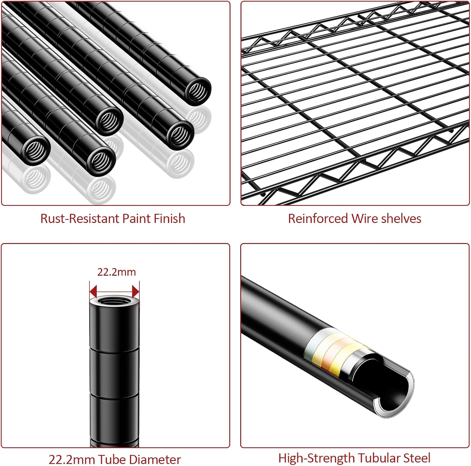 IZEUK 5-Tier Storage Shelving Unit with Wheels, Adjustable Heavy Duty Steel Wire Rack Organizer (Black, 17.7" D x 47.2" W x 76.7" H, 1750 lbs Capacity) for Garage, Kitchen, Office, Laundry, Basement