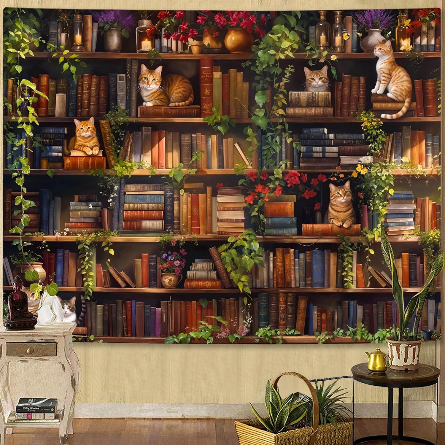 - Cat Book Design: This tapestry for bedroom features a charming bookshelf overflowing with books and adorable cats—some lounging, others peeking out. Perfect for cat and book lovers, adding a cozy, literary - feline vibe to bedrooms or reading corners
