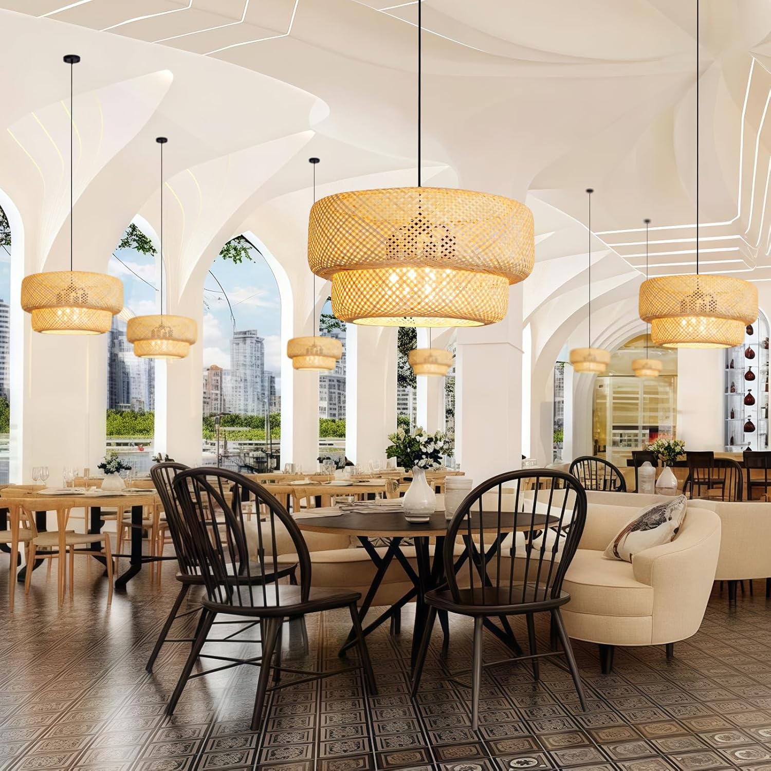 - 【Excellent Design】Bamboo rattan, the pendants are made of natural materials. The lights are hand woven with natural bamboo by superb skills bamboo artists. Decorated with classic tropical style elements, creates a wonderfully new look