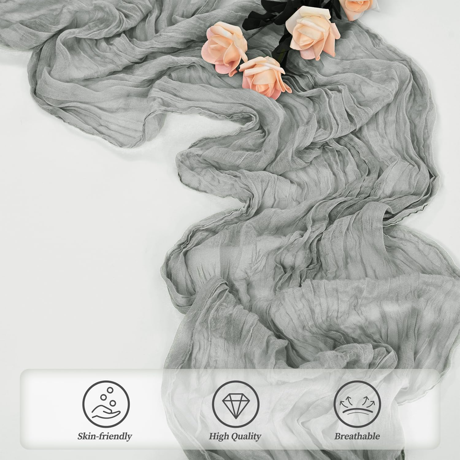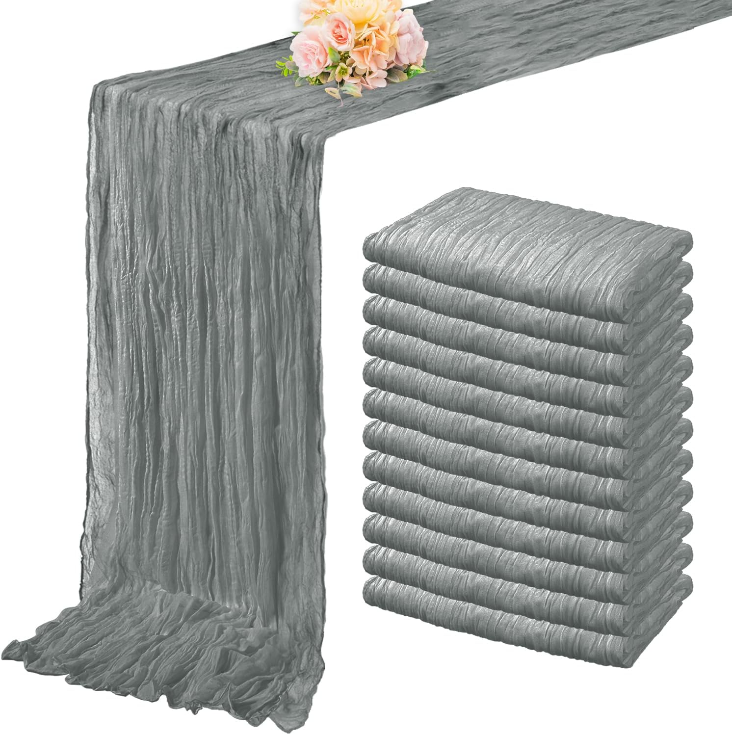 12 Pack Gray 10FT Cheesecloth Table Runner Rustic Gauze Fabric Cheese Cloth Table Runner for Wedding Bridal Baby Shower Table Decor 20 x 120 Inch Long Boho Sheer Birthday Party Table Decorations
