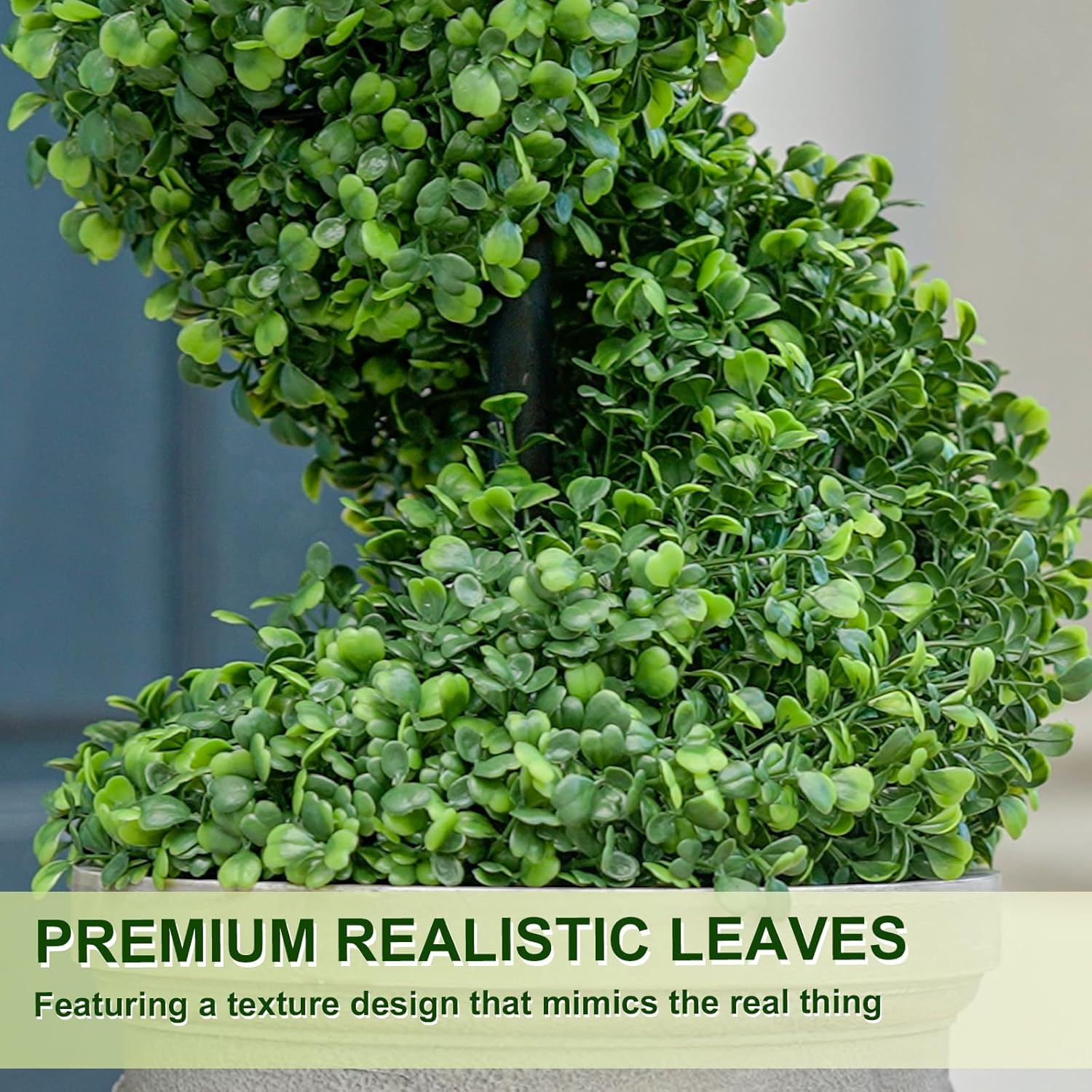 - âś… Lifelike Artificial Plant - Realistic looking plant with vibrant colors, and true to life texture details.The Spiral Boxwood Topiary trees artificial indoor are lifelike, when it is windy, it can sway in the breeze, creating a natural and comfortable atmosphere, bringing you comfort and adding color to your room.